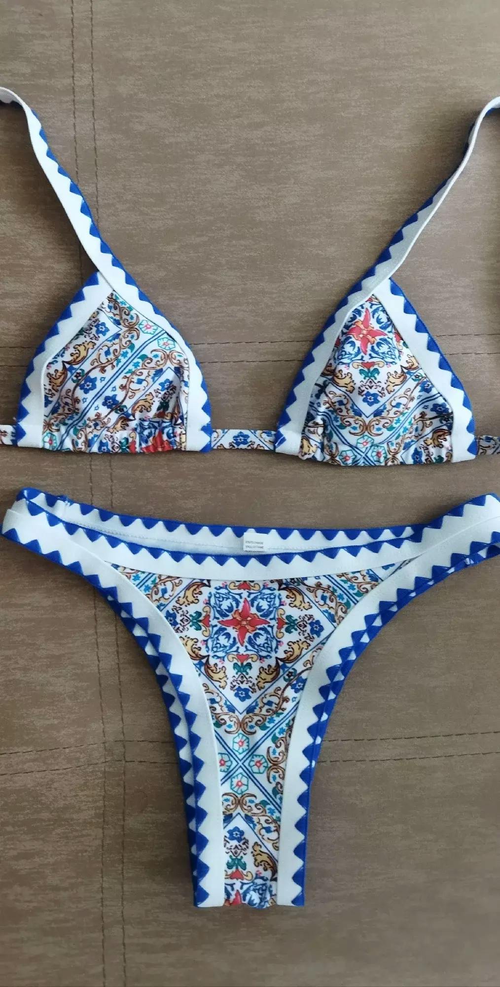 Bikini plażowe z etnicznym wzorem regulowane ramiączka Dyane