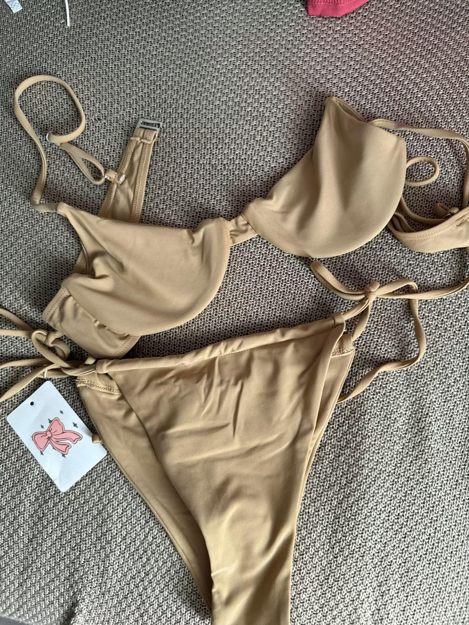 Bikini z nadrukiem charakteryzuje się dopracowanym krojem, który idealnie dopasowuje się do ciała, podkreślając jego naturalne kształty. Wykonane z miękkiego, przyjaznego dla skóry materiału, zapewnia komfort noszenia nawet podczas długiego pobytu na plaży czy przy basenie. Nadruk dodaje całości nowoczesnego wyglądu, czyniąc strój odpowiednim na różnorodne letnie okazje. Model ten łączy w sobie estetykę z funkcjonalnością, co czyni go praktycznym wyborem na ciepłe dni. Świetnie sprawdza się zarówno podczas opalania, jak i aktywności wodnych.
