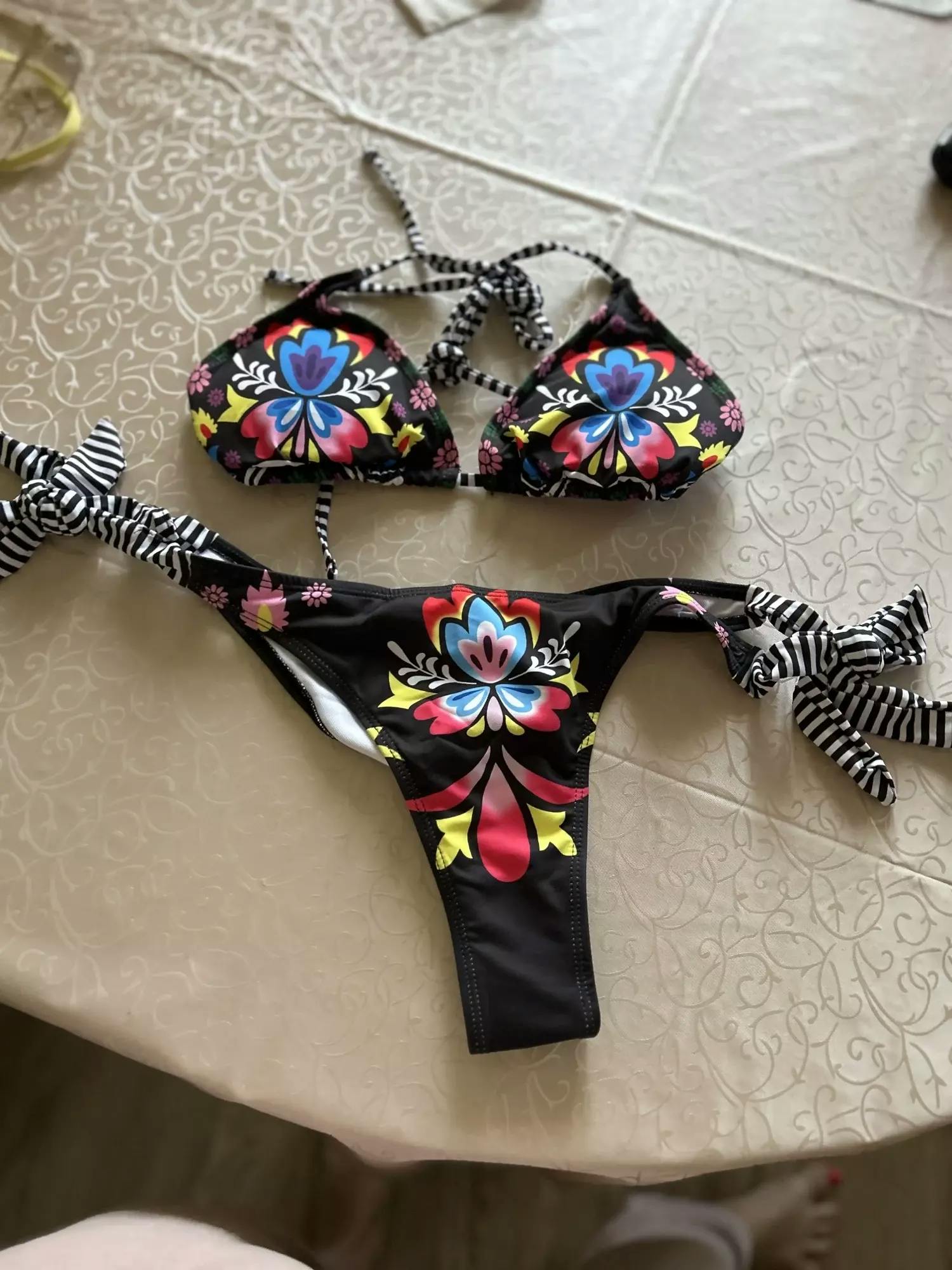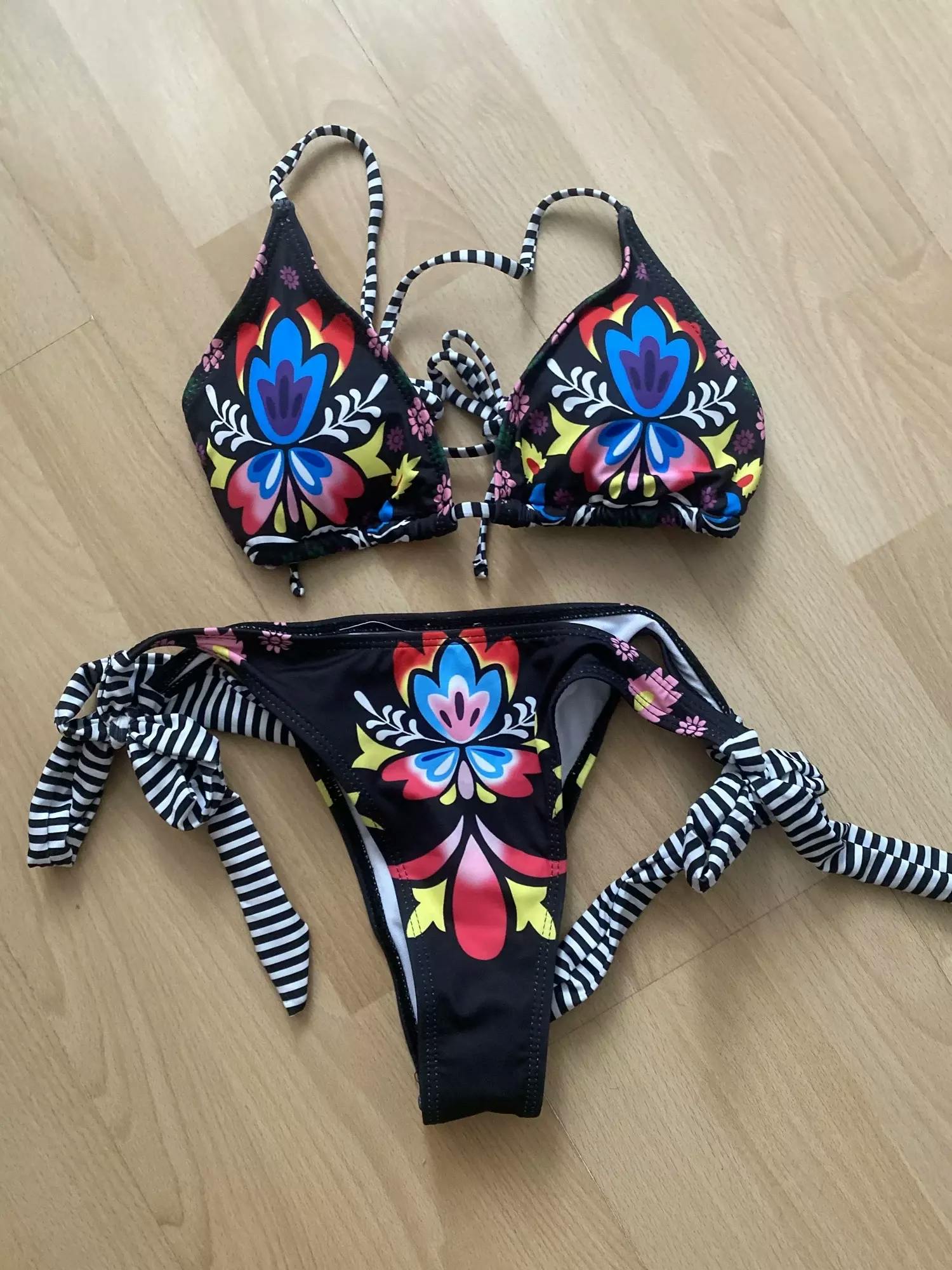 Bikini z paskami do wiązania charakteryzuje się kwiatowym wzorem, który nadaje mu unikalny wygląd. Regulowane paski umożliwiają idealne dopasowanie do sylwetki, co zwiększa komfort użytkowania. Wykonane z wysokiej jakości materiału, zapewnia swobodę ruchów, jednocześnie podkreślając kształty. Strój ten jest przeznaczony na letnie dni spędzane nad wodą, gdzie styl i funkcjonalność mają znaczenie. Każdy detal bikini został starannie dopracowany, aby spełniać oczekiwania nawet najbardziej wymagających użytkowniczek.