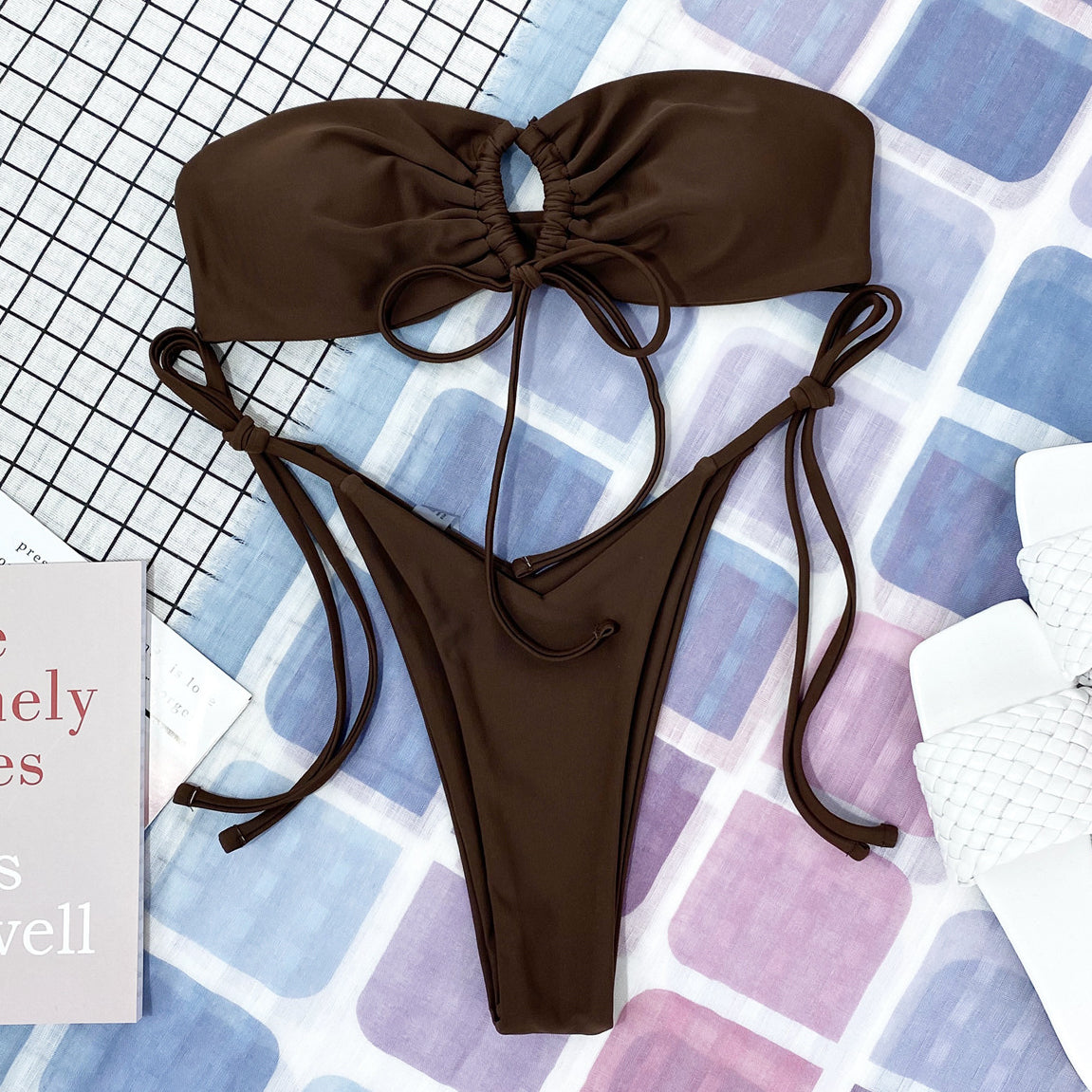 Bikini z topem bandeau z regulowanymi sznurkami na plażę Dodie