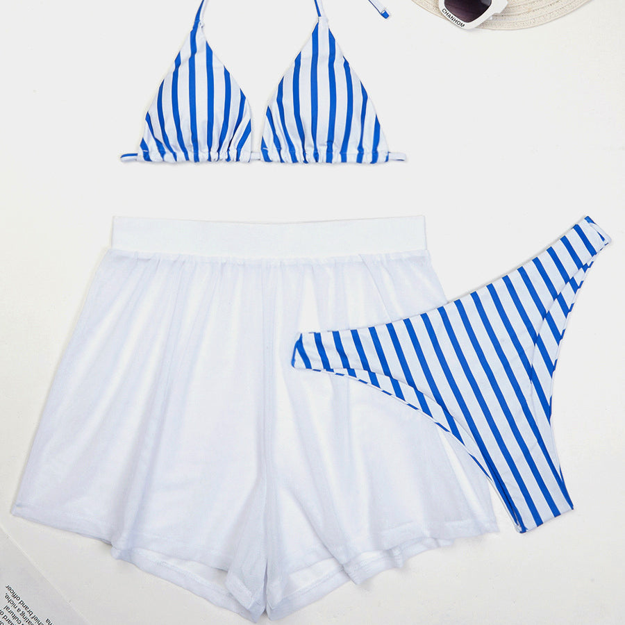 To wiązane bikini z szortami łączy w sobie klasyczne wzornictwo z funkcjonalnością, oferując wygodę i styl. Zestaw składa się z dopasowanego biustonosza z możliwością regulacji oraz luźniejszych szortów, które zapewniają swobodę ruchu. Materiał jest elastyczny i dobrze przylega do ciała, co gwarantuje komfort podczas różnych aktywności na plaży lub przy basenie. Dzięki konstrukcji zapewniającej doskonałe dopasowanie, strój ten jest idealny na lato, oferując jednocześnie estetykę i praktyczność.