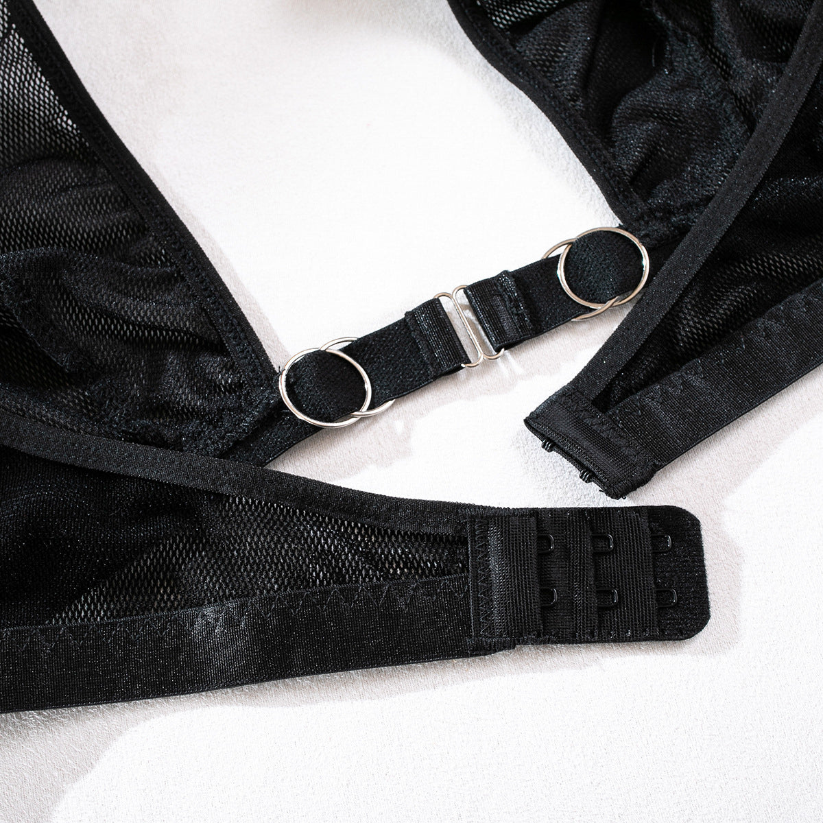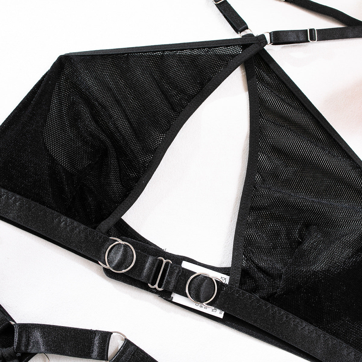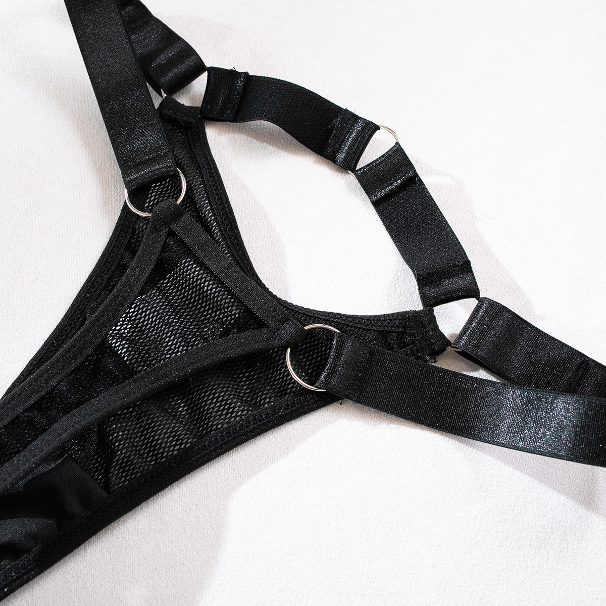 Zestaw bielizny z biustonoszem o skrzyżowanym kroju łączy elegancję z funkcjonalnością. Biustonosz z regulowanymi paskami zapewnia indywidualne dopasowanie, a jego konstrukcja podkreśla sylwetkę, oferując jednocześnie wygodę noszenia przez cały dzień. Materiał jest miękki, oddychający i przyjazny dla skóry, co zwiększa komfort użytkowania. Delikatne akcenty dekoracyjne dodają subtelnego uroku, czyniąc zestaw odpowiednim zarówno na codzienne noszenie, jak i na wyjątkowe okazje, kiedy zależy Ci na stylowym wyglądzie.