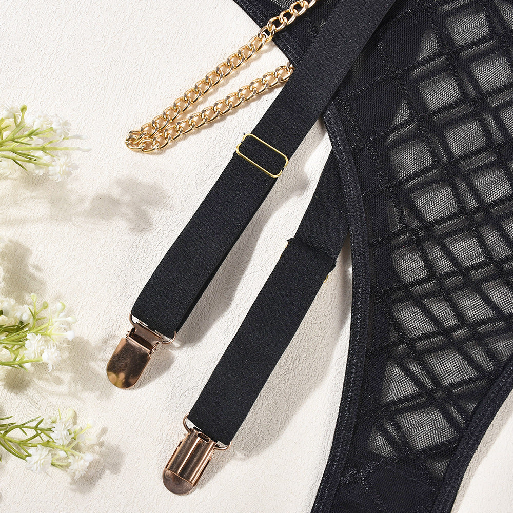 Body z przeszyciami to elegancka bielizna, która łączy w sobie delikatność koronek i funkcjonalność elastycznych pasków. Wykonane z wysokogatunkowych materiałów, zapewnia komfort noszenia i doskonałe dopasowanie do sylwetki. Subtelne przeszycia wprowadzają unikatowy akcent, a starannie dobrany krój podkreśla naturalne kształty. Idealne na specjalne okazje, oferuje zarówno estetykę, jak i praktyczność, stanowiąc harmonijne połączenie stylu i wygody. Idealnie sprawdzi się jako element garderoby na wyjątkowe momenty.