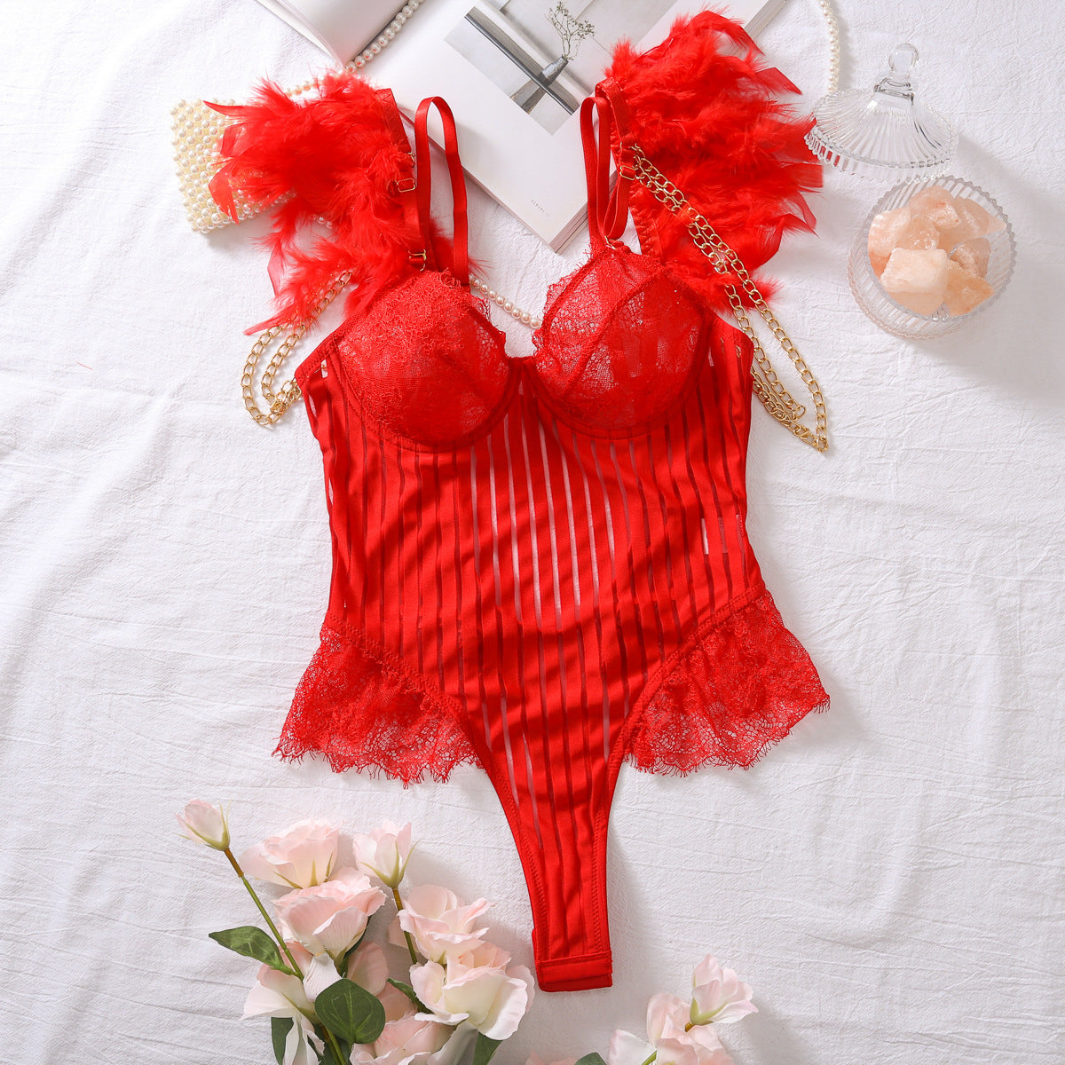 Body z piórkami to połączenie elegancji i wyrazistości, wykonane z subtelnej siateczki, ozdobione koronkowymi akcentami. Materiał delikatnie otula sylwetkę, podkreślając jej naturalne linie, co sprawia, że jest idealnym wyborem na wieczorowe wyjścia. Siateczkowa struktura zapewnia przewiewność, a zarazem komfort użytkowania, czyniąc je odpowiednim na specjalne okazje. Detale z piór dodają mu niepowtarzalnego charakteru, co czyni ten model wyjątkowym elementem garderoby na romantyczne spotkania.