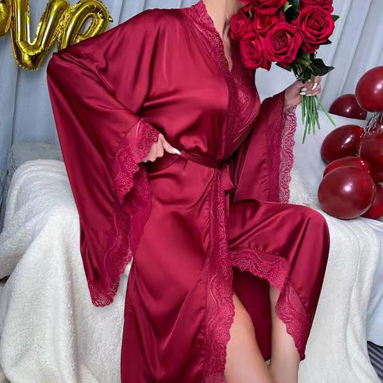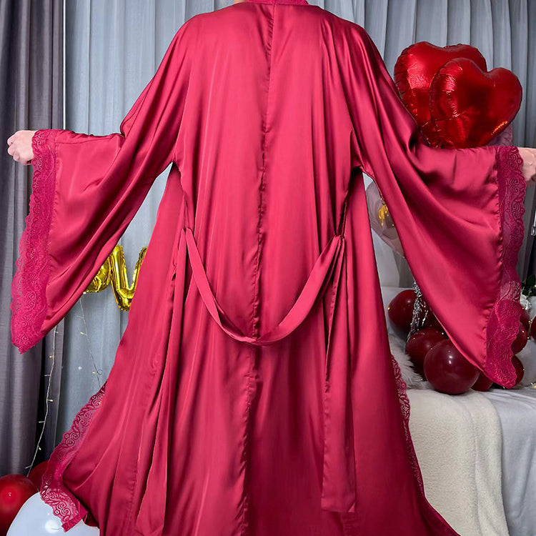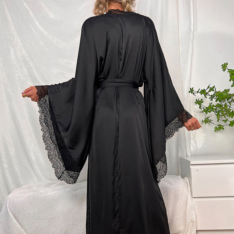 Długi szlafrok z koronkowym wykończeniem na wieczorny relaks Gratianne