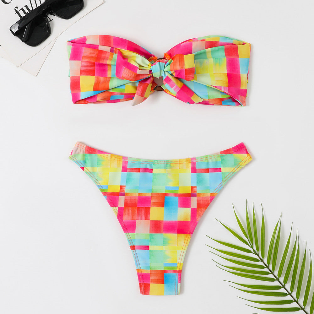 Dwuczęściowy strój kąpielowy bez ramiączek z elastycznego materiału na lato Brigitte