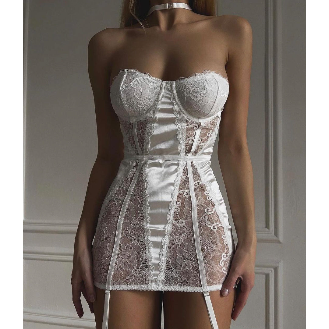 Gorsetowa koszulka nocna bez ramiączek z delikatnym zdobieniem Hafida