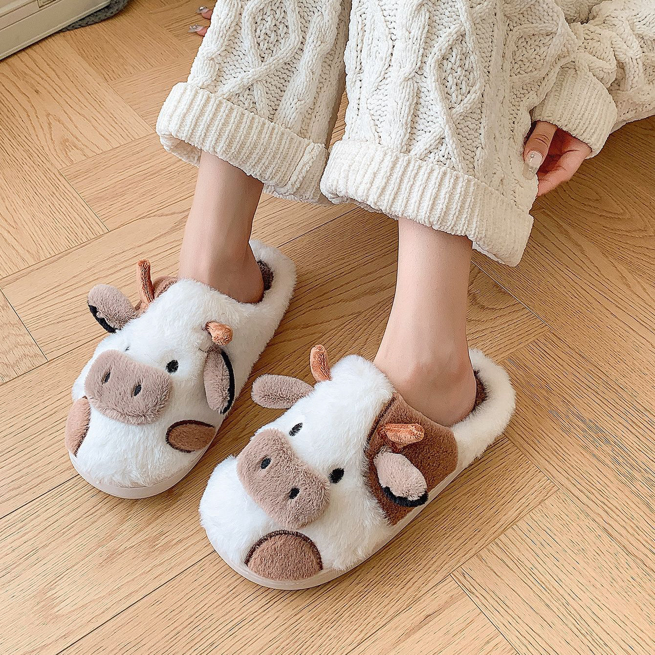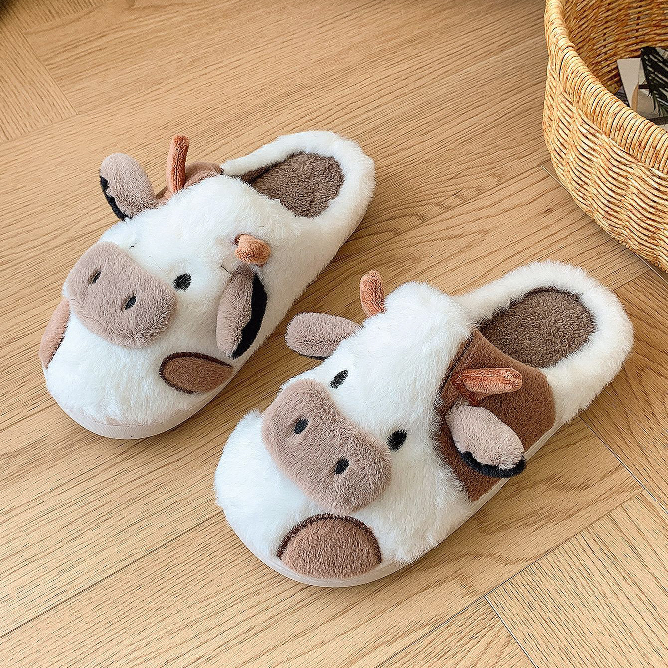 Klapki domowe w kształcie krowy z miękkiego materiału Gonnie