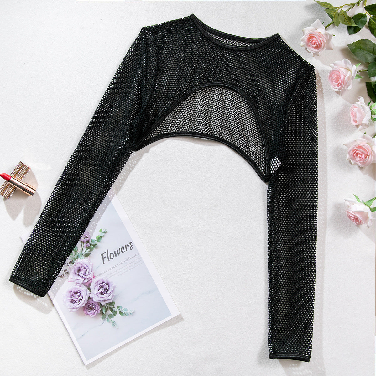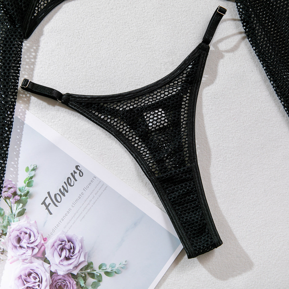 Komplet bieliźniany z narzutką i crop topem siateczkowy na wieczór Jorien