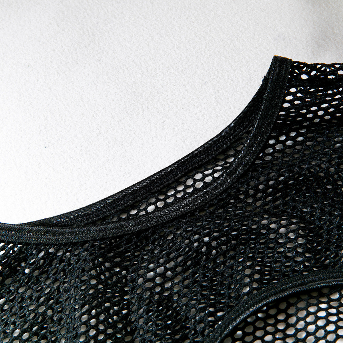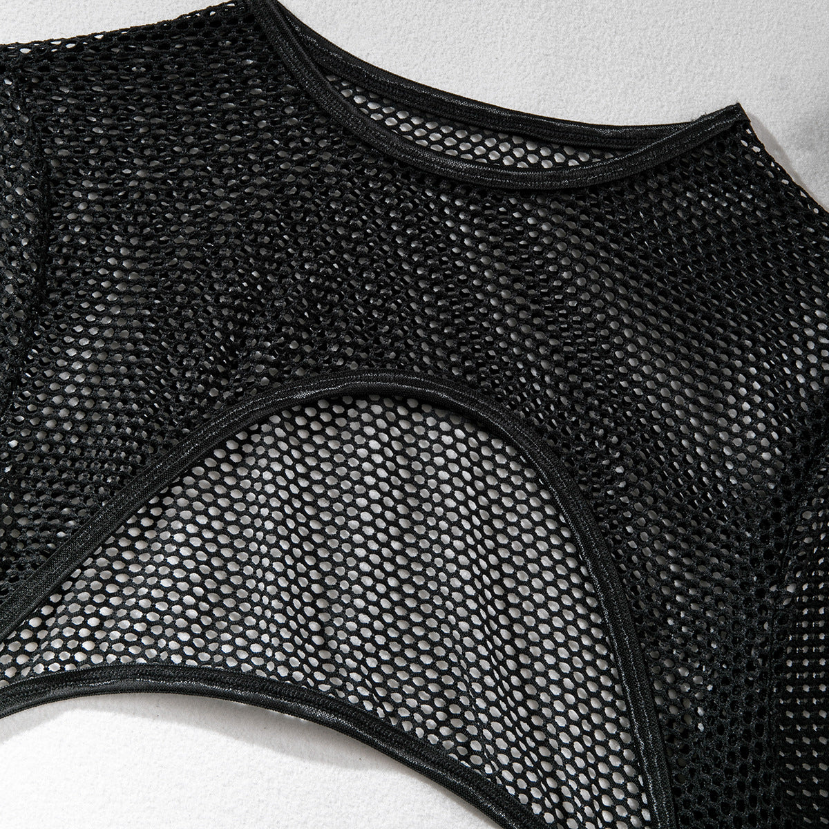 Stylowy komplet z narzutką typu crop top charakteryzuje się siateczkową tkaniną, która idealnie dopasowuje się do sylwetki, subtelnie ją podkreślając. Przeznaczony dla kobiet ceniących komfort i elegancję, zestaw ten jest doskonałym wyborem zarówno na wieczorne wyjścia, jak i do codziennego noszenia w domowym zaciszu. Jego uniwersalny charakter pozwala na łatwe łączenie z innymi częściami garderoby, co zwiększa jego funkcjonalność. Dyskretny design i praktyczność czynią z niego wyjątkowy element kobiecej szafy.
