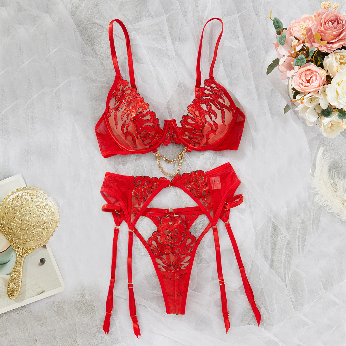 Komplet bielizny ażurowej z łańcuszkiem na romantyczne wieczory Danita
