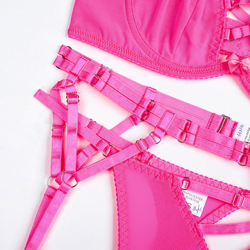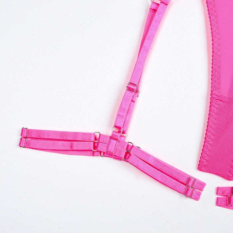 Bielizna w stylu harness oferuje unikalne połączenie nowoczesnego designu i funkcjonalności. Wykonana z elastycznych materiałów, precyzyjnie dopasowuje się do sylwetki, podkreślając naturalne kształty. Struktura z pasków zapewnia nie tylko estetyczny wygląd, ale także komfort podczas noszenia. Przeznaczona dla kobiet ceniących nowoczesne rozwiązania w garderobie. Zestaw doskonale sprawdzi się zarówno przy specjalnych okazjach, jak i jako element codziennego ubioru, dodając oryginalności i subtelnej elegancji.