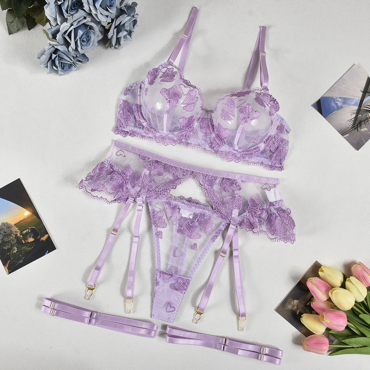 Komplet bielizny koronkowej z haftem na romantyczne wieczory Cristen
