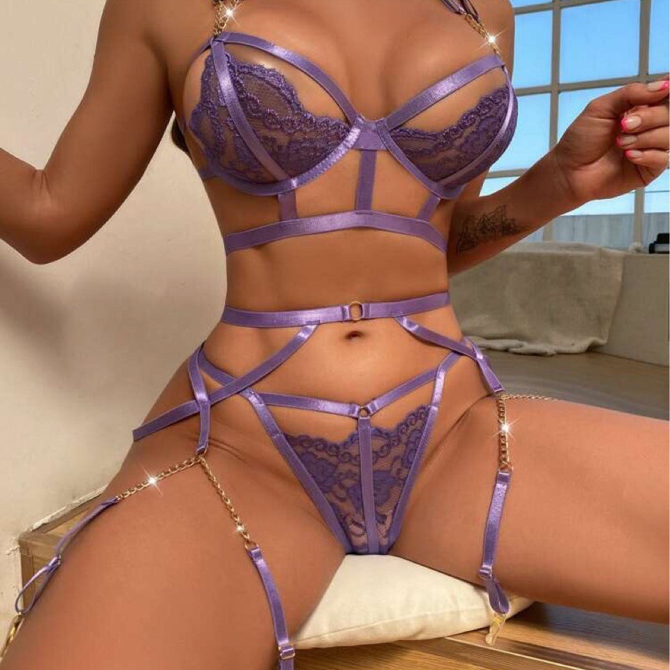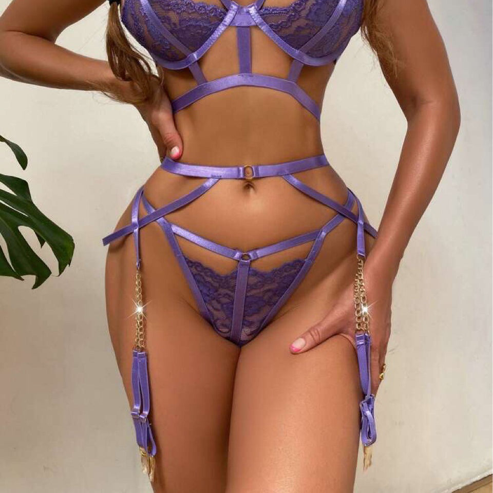Komplet bielizny koronkowej z paskami na romantyczny wieczór Wafaa
