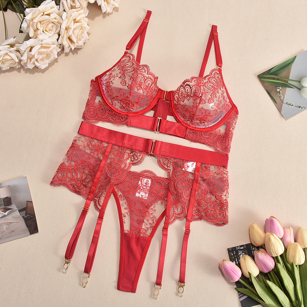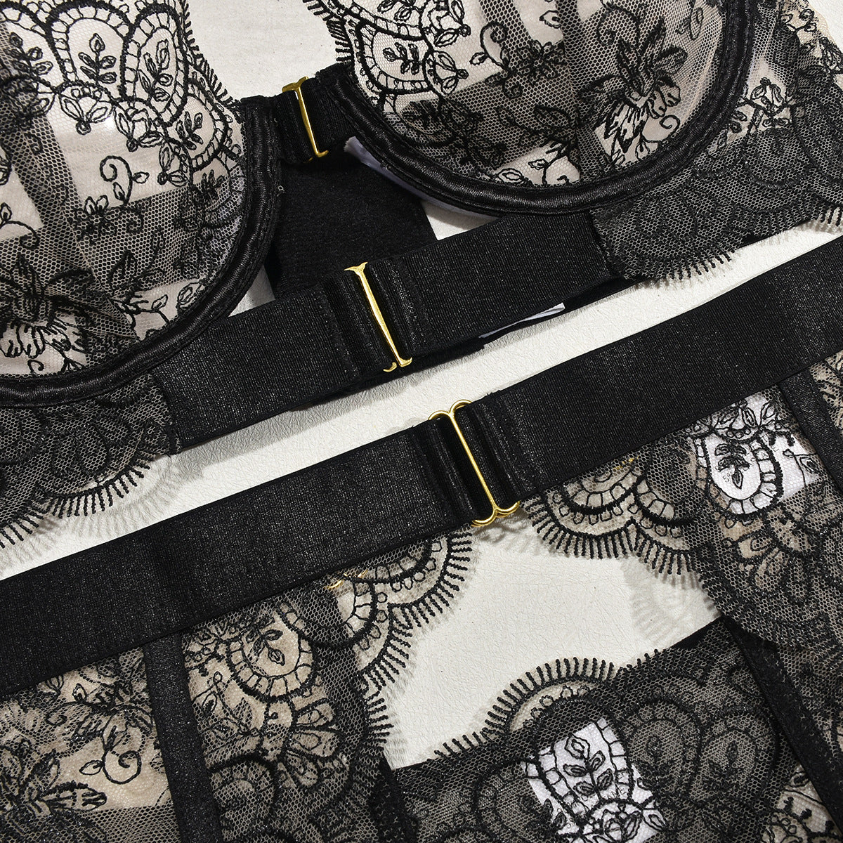 Komplet bielizny koronkowej z push-upem i pasem do pończoch Egypt