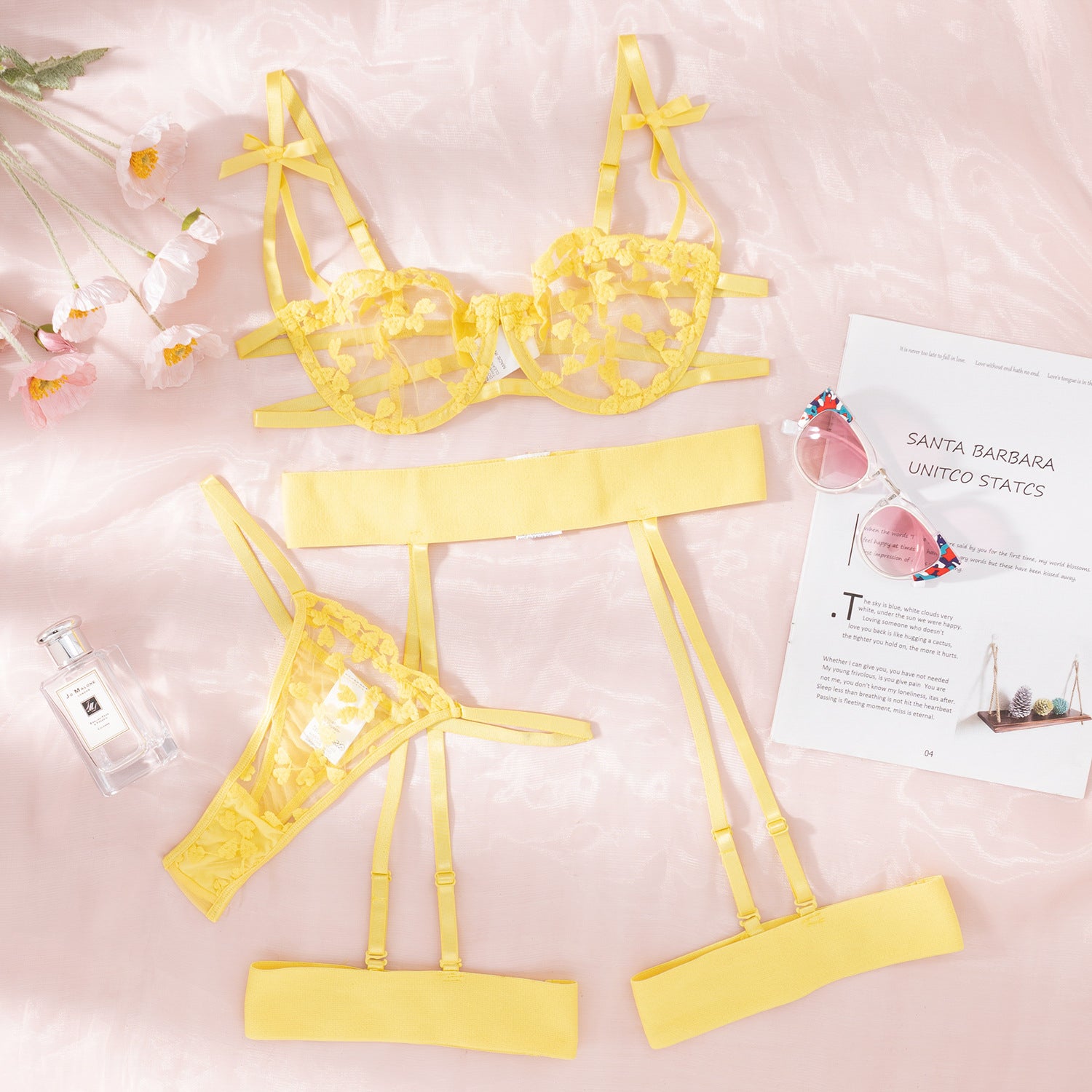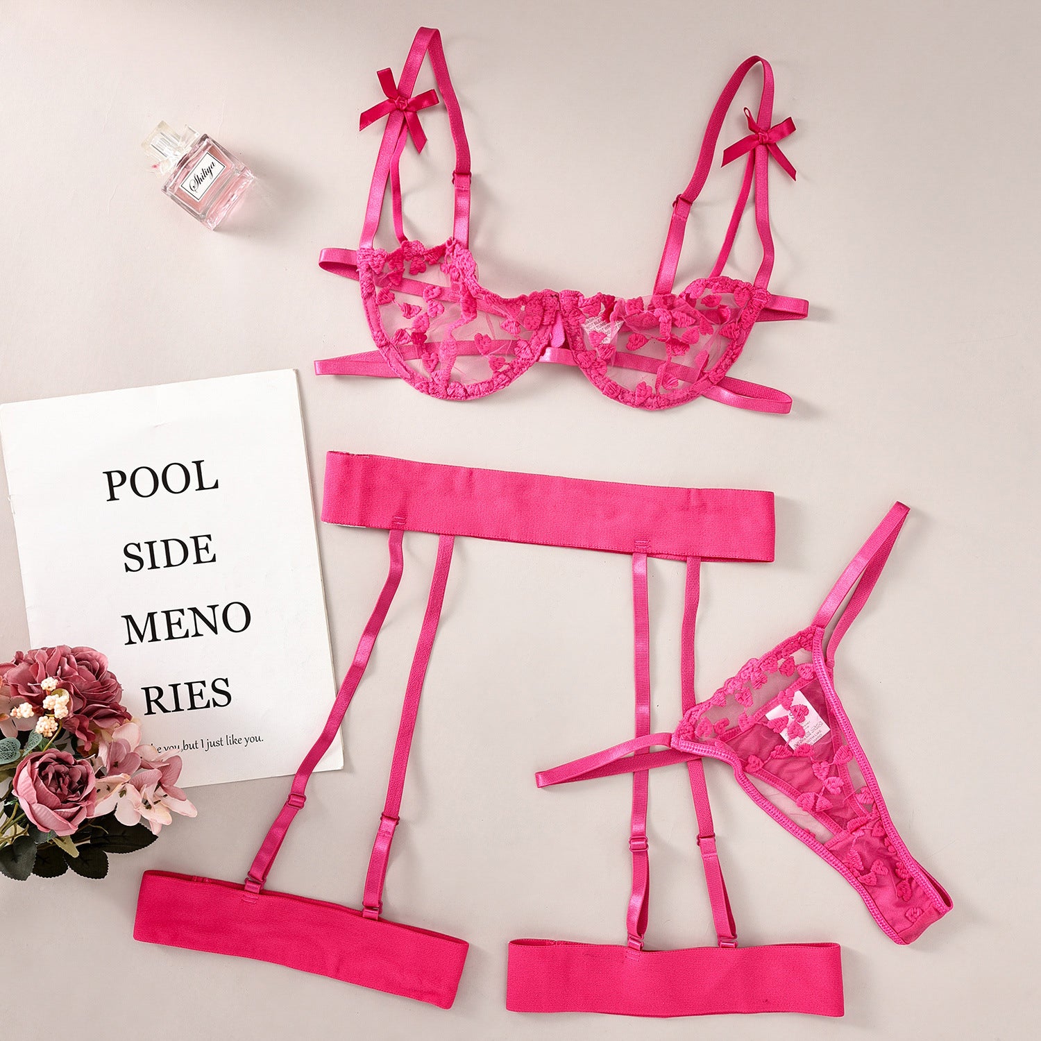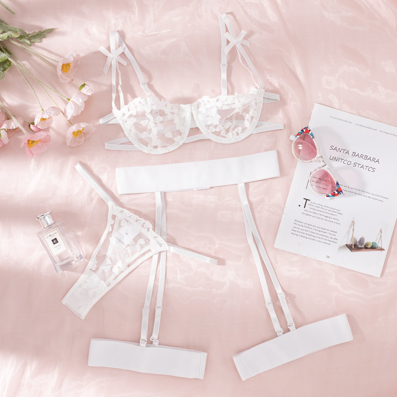 Komplet bielizny z kokardkami to połączenie praktyczności i estetyki. Wykonany z materiałów wysokiej jakości, zapewnia optymalne dopasowanie do ciała, co podkreśla naturalne kształty sylwetki. Elementy z delikatnej koronki oraz starannie wykonane kokardki dodają uroku i elegancji. Konstrukcja zestawu gwarantuje komfort noszenia przez cały dzień, a subtelne detale nadają mu unikalnego charakteru. Doskonale sprawdzi się zarówno na co dzień, jak i na specjalne okazje, stanowiąc harmonijną całość w garderobie.