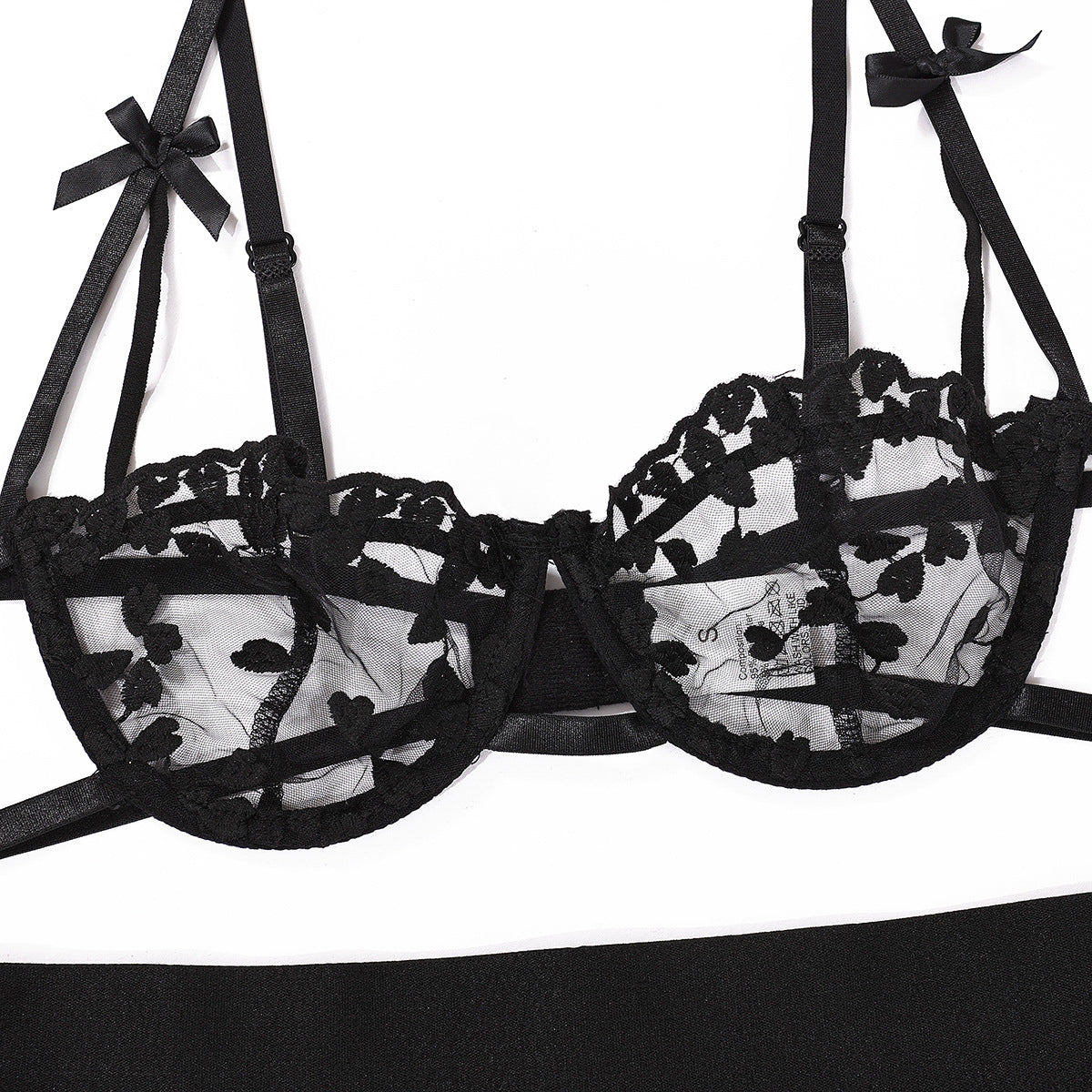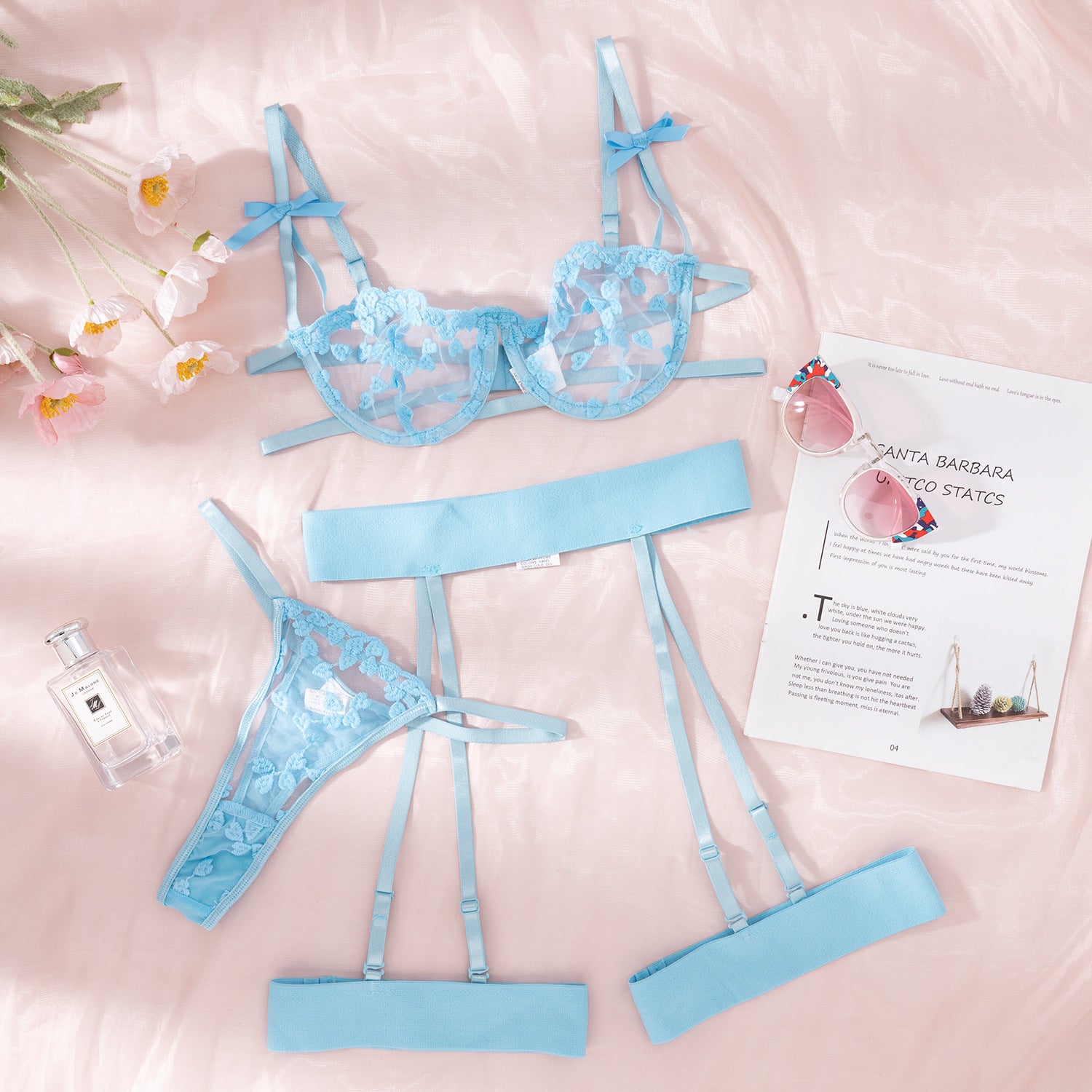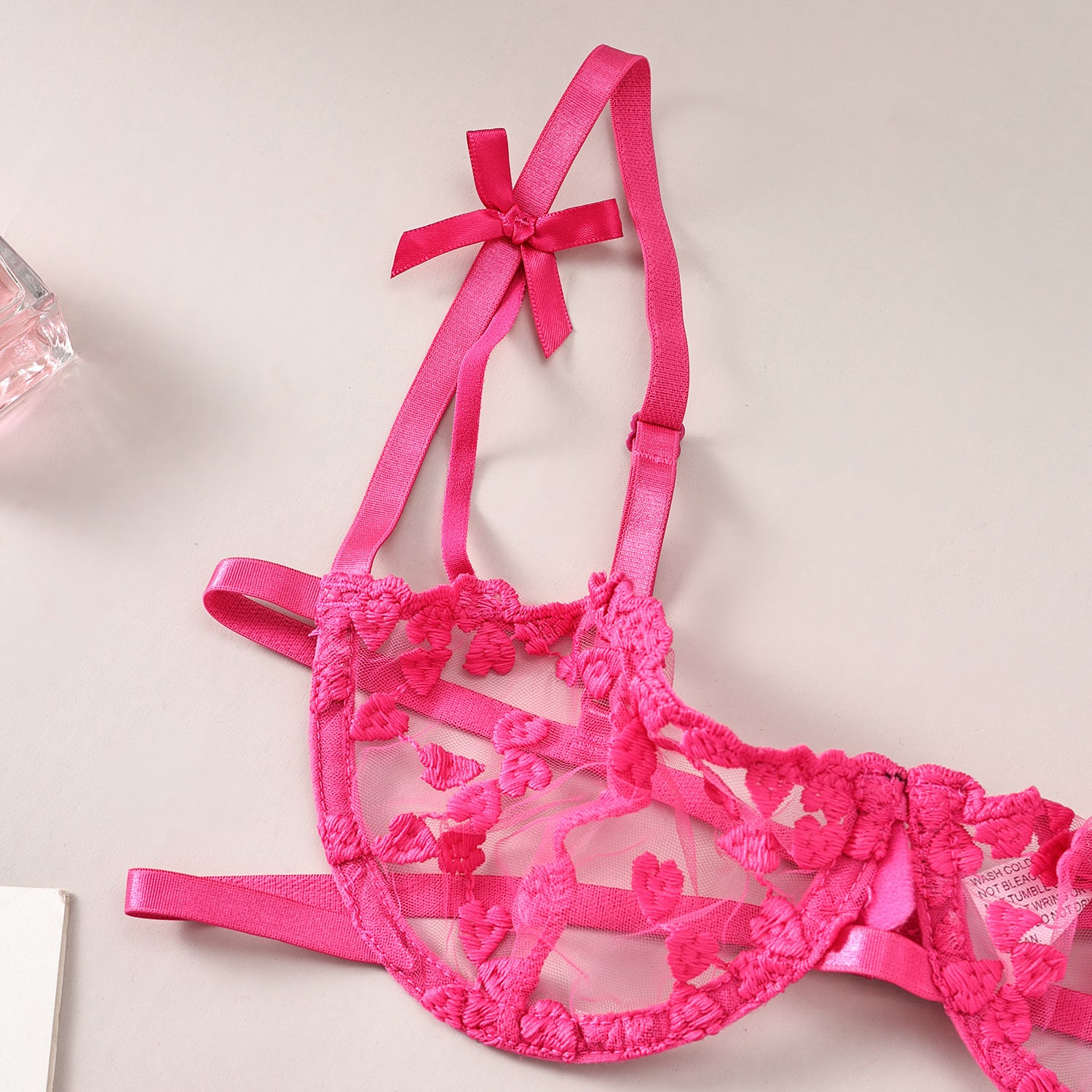 Komplet bielizny z kokardkami to połączenie praktyczności i estetyki. Wykonany z materiałów wysokiej jakości, zapewnia optymalne dopasowanie do ciała, co podkreśla naturalne kształty sylwetki. Elementy z delikatnej koronki oraz starannie wykonane kokardki dodają uroku i elegancji. Konstrukcja zestawu gwarantuje komfort noszenia przez cały dzień, a subtelne detale nadają mu unikalnego charakteru. Doskonale sprawdzi się zarówno na co dzień, jak i na specjalne okazje, stanowiąc harmonijną całość w garderobie.