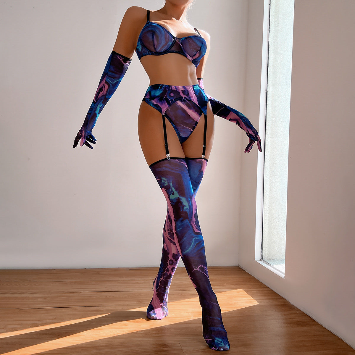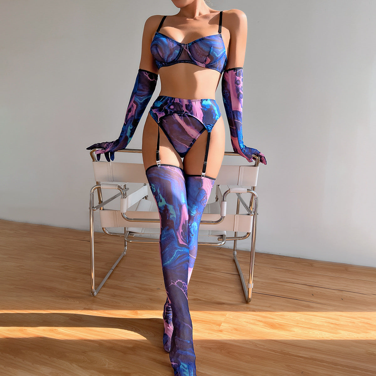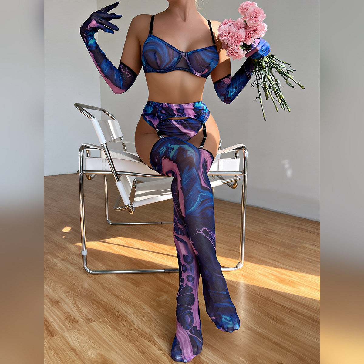 Pięcioczęściowy komplet bielizny, stworzony z myślą o wygodzie i estetyce, składa się z elementów doskonale dopasowujących się do ciała. Każda część zestawu wykonana jest z materiałów o wysokiej jakości, co przekłada się na trwałość i komfort noszenia. Zestaw charakteryzuje się subtelnymi detalami, które dodają mu wyjątkowego charakteru. Idealny na specjalne okazje, ale również jako urozmaicenie codziennej garderoby, ten komplet bielizny łączy funkcjonalność z nowoczesnym designem, podkreślając naturalne kształty sylwetki.