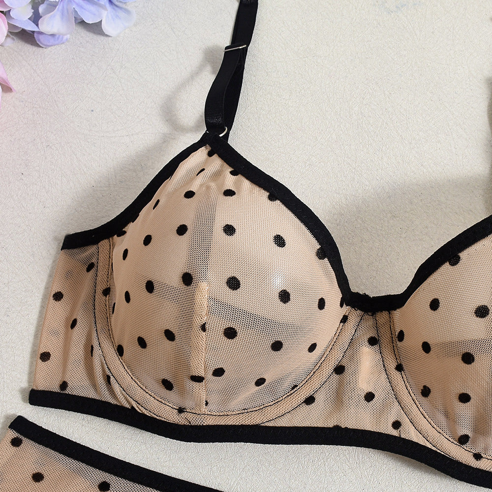 Komplet bielizny w kropki z regulowanymi ramiączkami na romantyczne wieczory Nynke