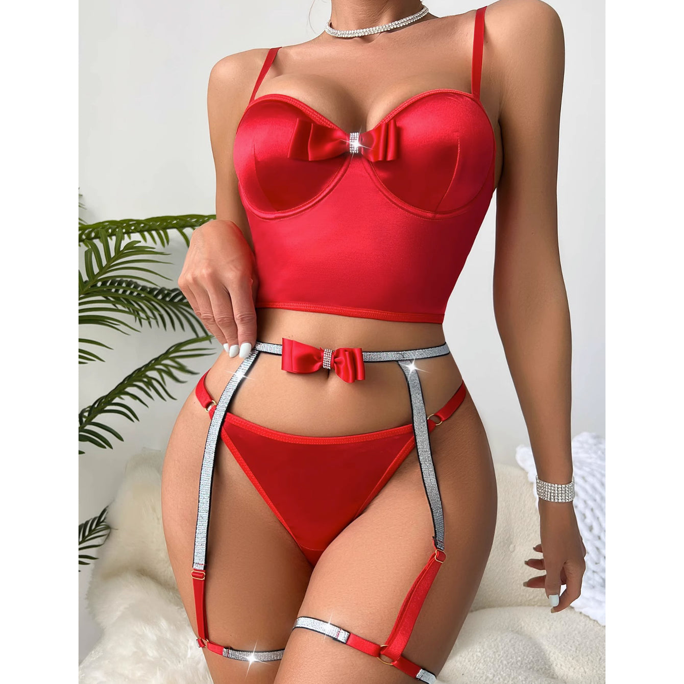 Komplet bielizny z body i pasem do pończoch z kokardą Iside