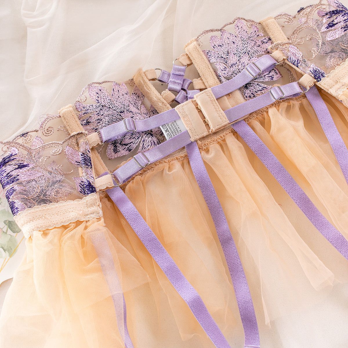 Ta bogato zdobiona bielizna wyróżnia się eleganckim krojem, który podkreśla naturalne kształty sylwetki. Komplet wykonany z wysokiej jakości materiałów zapewnia komfort noszenia przez cały dzień. Delikatne zdobienia i precyzyjne wykończenia dodają mu unikalnego charakteru, czyniąc go doskonałym wyborem na romantyczne wieczory. Projekt skoncentrowany na detalach gwarantuje idealne dopasowanie i wygodę. To propozycja dla kobiet ceniących sobie połączenie funkcjonalności z estetyką.