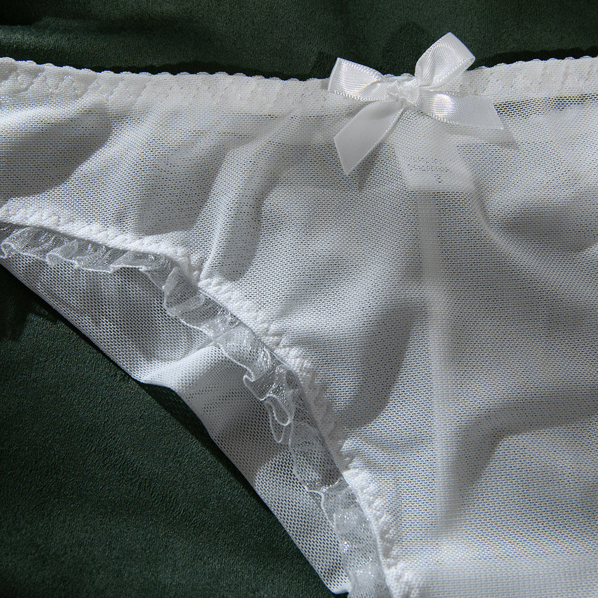 Komplet bielizny z subtelnym wykończeniem falbanką charakteryzuje się eleganckim designem łączącym wygodę z estetyką. Składa się z biustonosza oraz majtek, które dzięki starannemu krojowi podkreślają naturalne kształty. Zastosowane materiały zapewniają komfort noszenia, a delikatne detale dodają całości wyrafinowanego charakteru. Idealnie sprawdza się zarówno na specjalne okazje, jak i do codziennego użytku, oferując połączenie funkcjonalności z walorami wizualnymi.