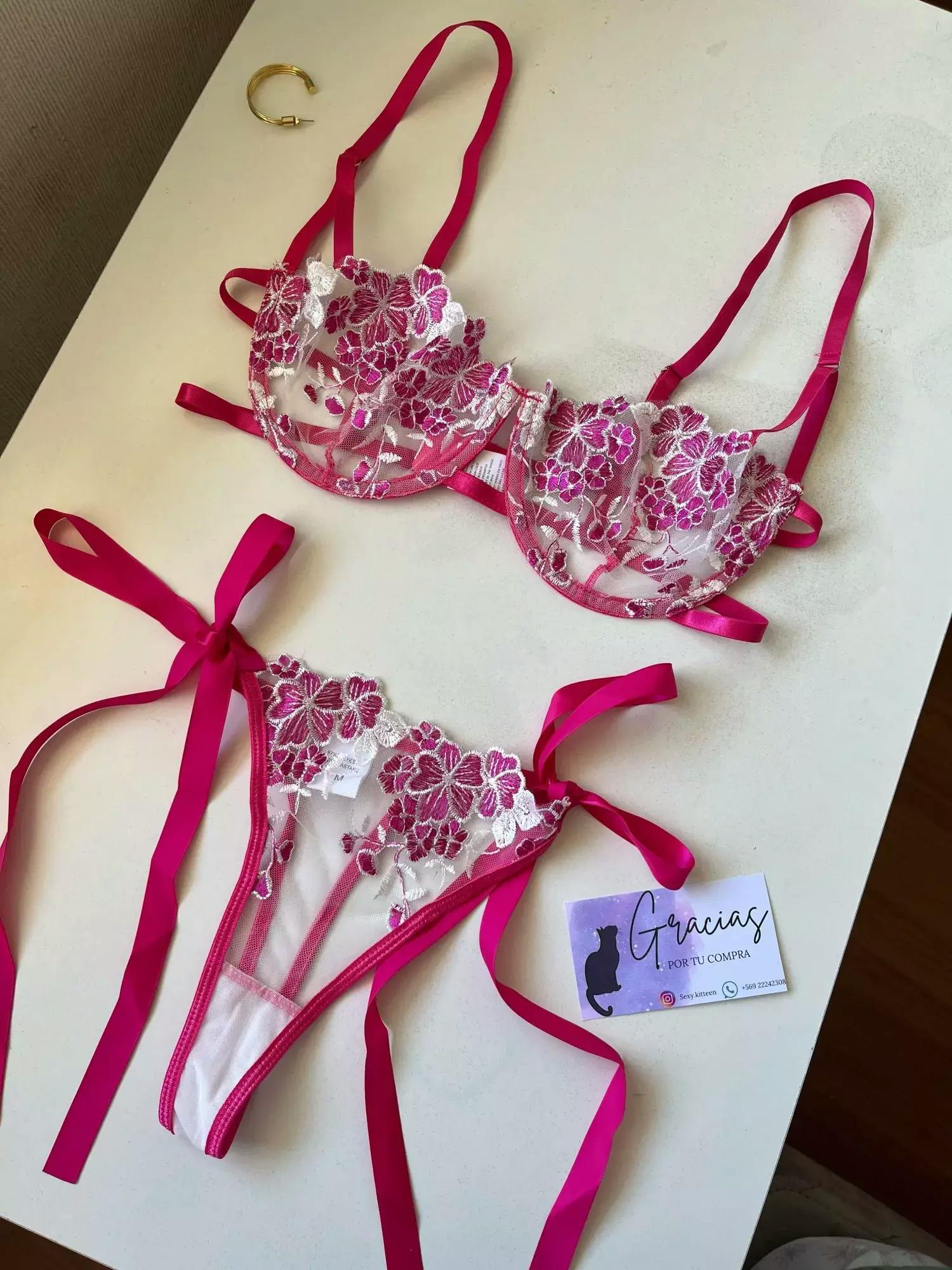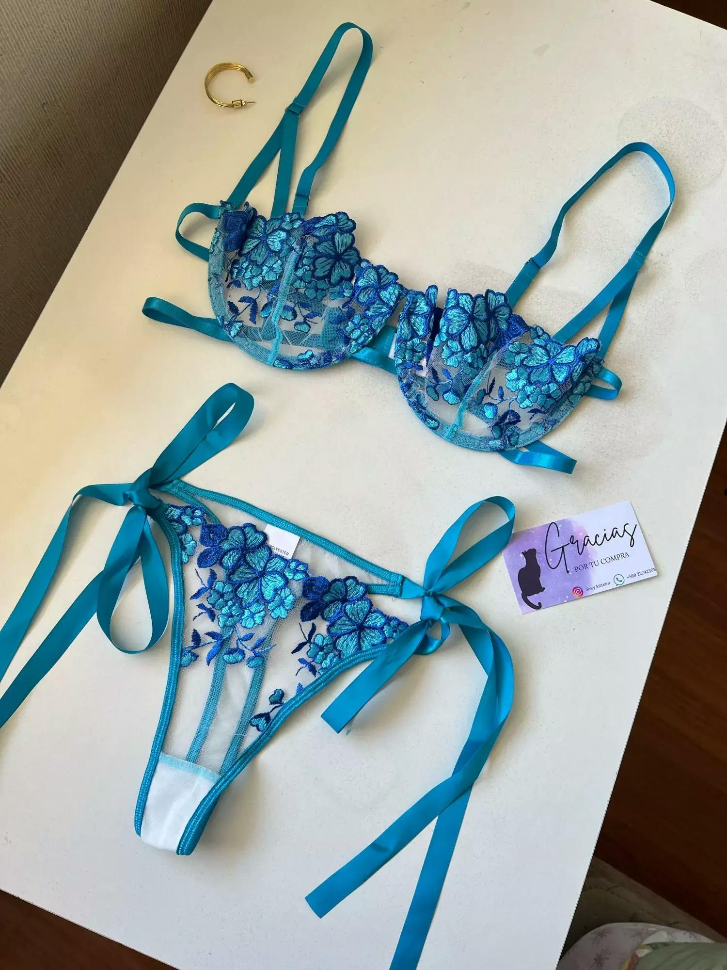 Komplet bielizny z haftem regulowane ramiączka Ayumi