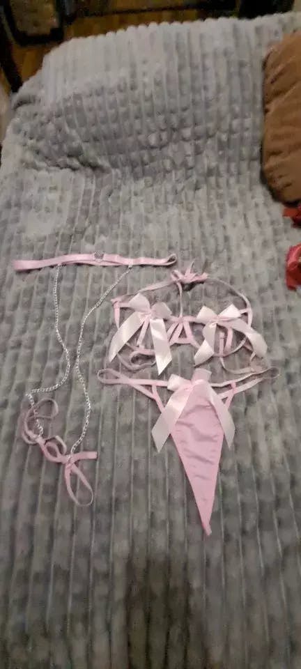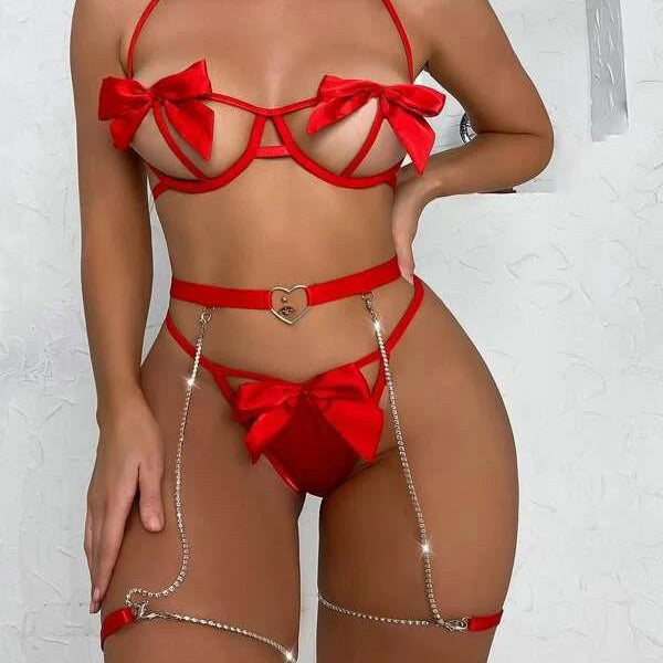 Komplet bielizny z kokardami i łańcuszkiem na romantyczne wieczory Reinlinde