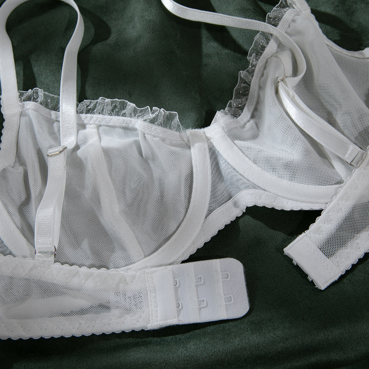 Komplet bielizny obejmuje biustonosz i figi, łączące komfort z subtelną elegancją. Wykonany z przyjemnego w dotyku materiału, zapewnia doskonałe dopasowanie. Koronkowe wykończenia nadają mu delikatny urok, idealny zarówno na co dzień, jak i na specjalne okazje. Konstrukcja biustonosza wspiera i podkreśla sylwetkę, podczas gdy figi gwarantują wygodę noszenia przez cały dzień. Starannie dobrany krój i materiały pozwalają na komfortowe użytkowanie, nie rezygnując przy tym z estetyki i funkcjonalności.