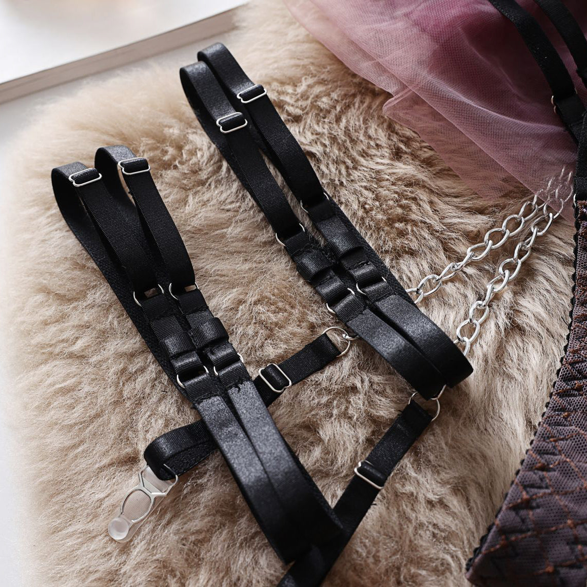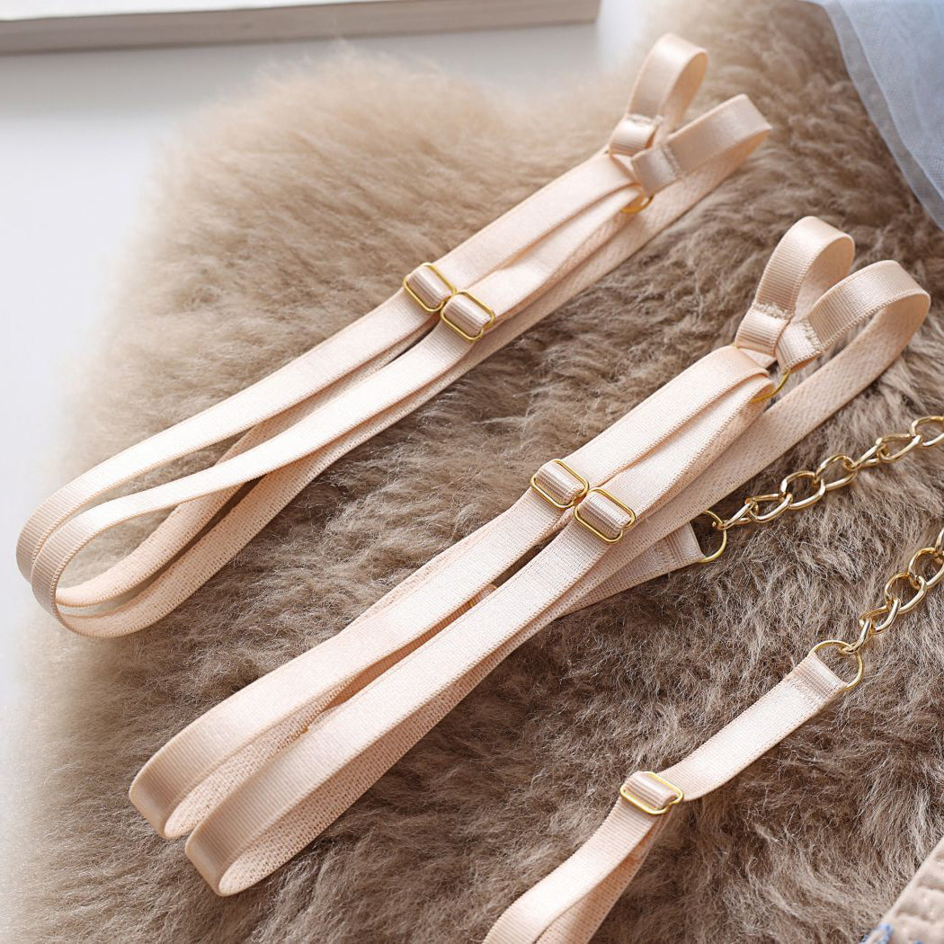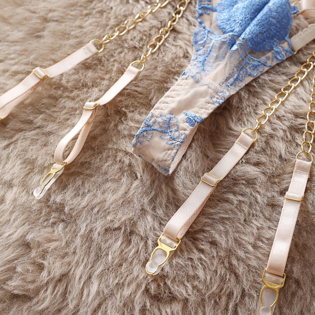 Ten komplet bielizny charakteryzuje się bogatymi zdobieniami, które wyróżniają się misternym wykonaniem. Stworzony z dbałością o szczegóły, oferuje połączenie delikatnych koronek z odrobiną ekstrawagancji, co czyni go odpowiednim wyborem na wyjątkowe okazje. Wysokiej jakości materiały zapewniają komfort noszenia oraz trwałość, a unikalne wzory dodają luksusowego charakteru. Idealny dla osób ceniących sobie elegancję i styl, komplet podkreśla indywidualność, nie rezygnując przy tym z funkcjonalności.