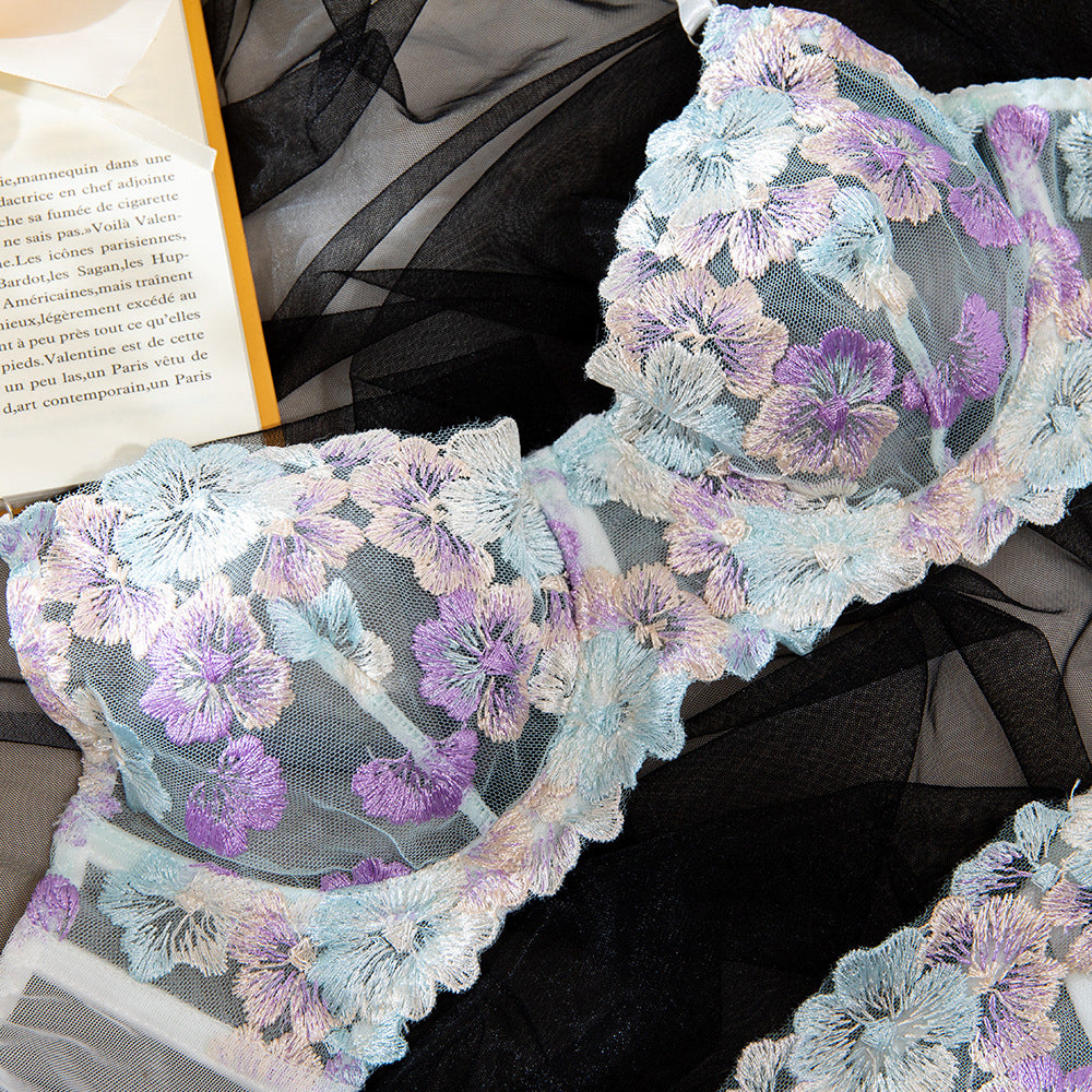 Komplet bielizny z koronkowym biustonoszem i haftowanymi miseczkami Roosmarij