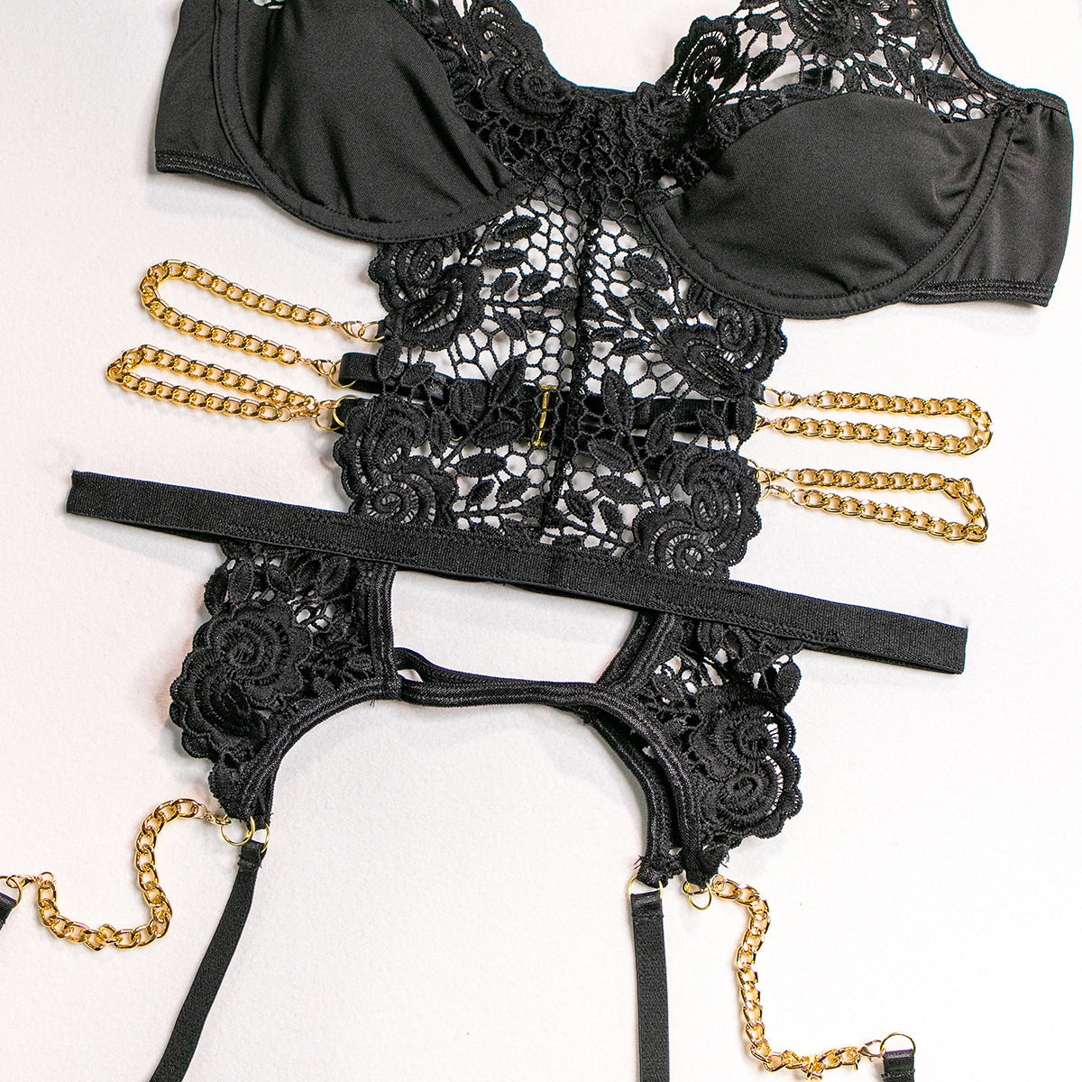 Komplet z koronkowym wykończeniem to propozycja dla kobiet ceniących subtelność i wygodę. Delikatna koronka, zastosowana w strategicznych miejscach, nadaje zestawowi elegancki i zmysłowy charakter. Dzięki regulowanym elementom, komplet dostosowuje się do sylwetki, zapewniając komfort noszenia. Starannie dobrane przeszycia i detale podkreślają walory figury, tworząc harmonijną całość. Materiał jest przewiewny i miły w dotyku, co sprawia, że komplet sprawdzi się zarówno na co dzień, jak i na specjalne okazje.