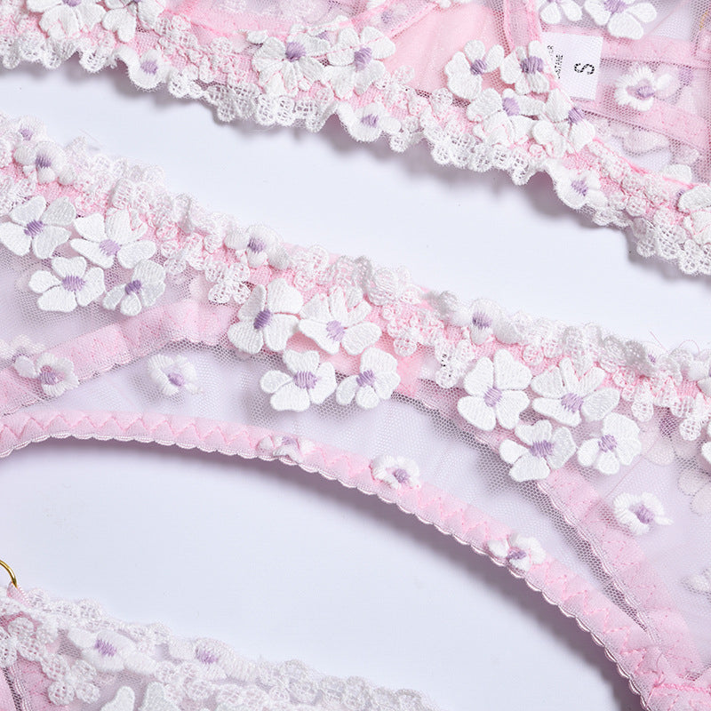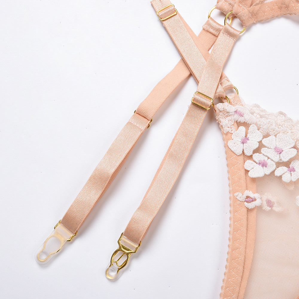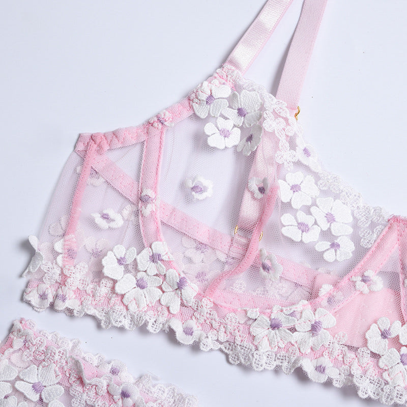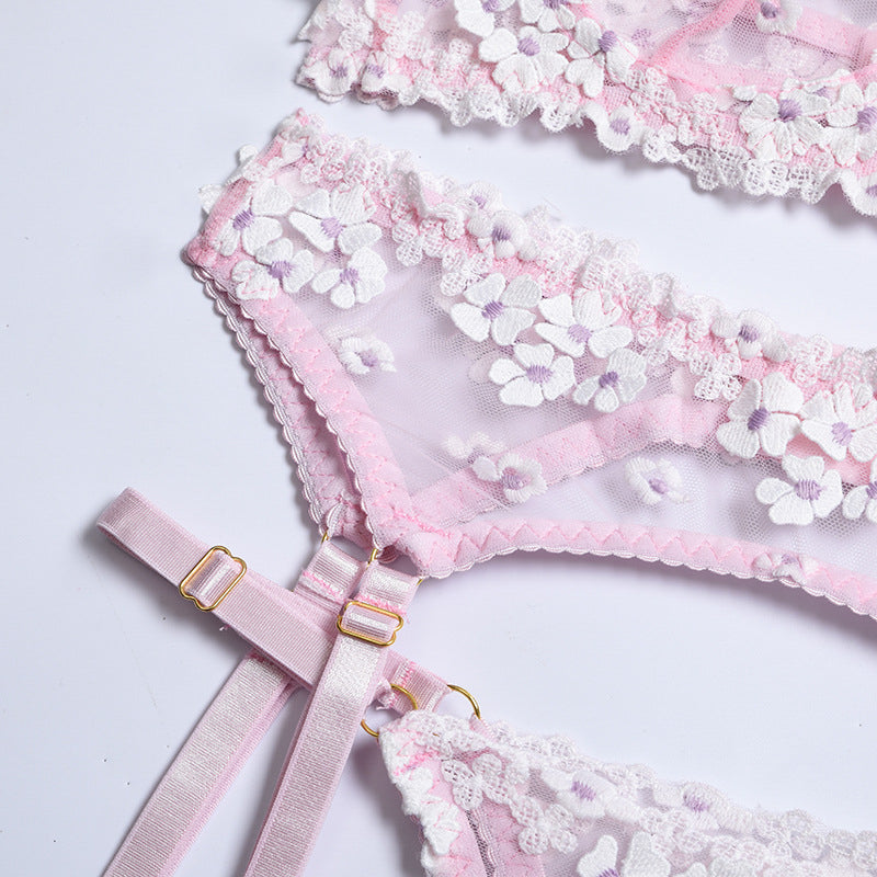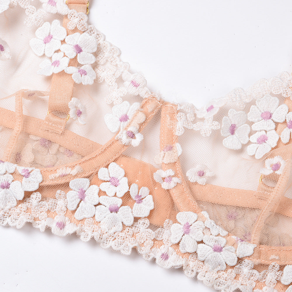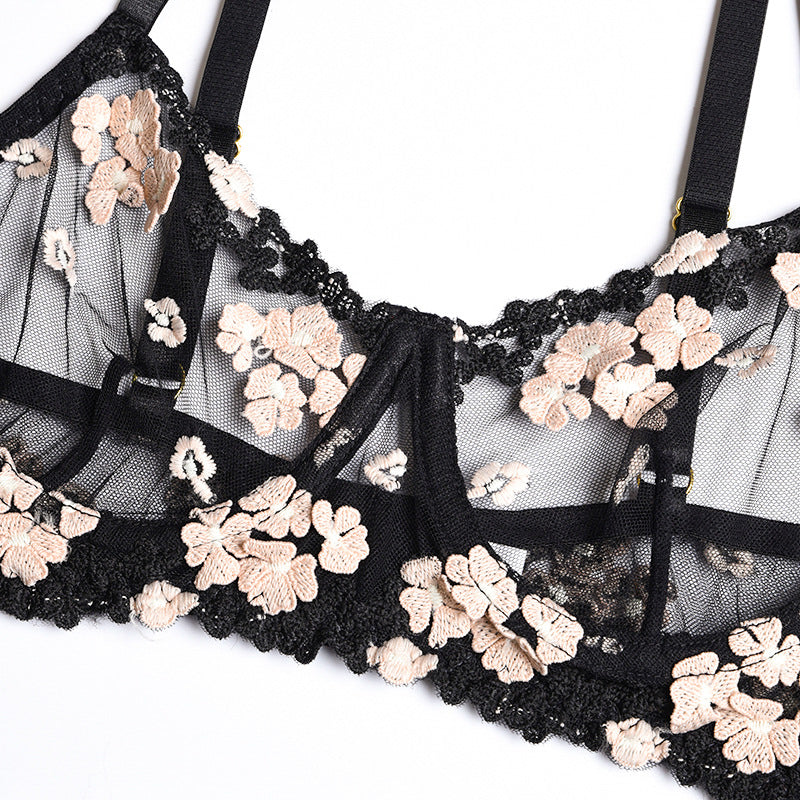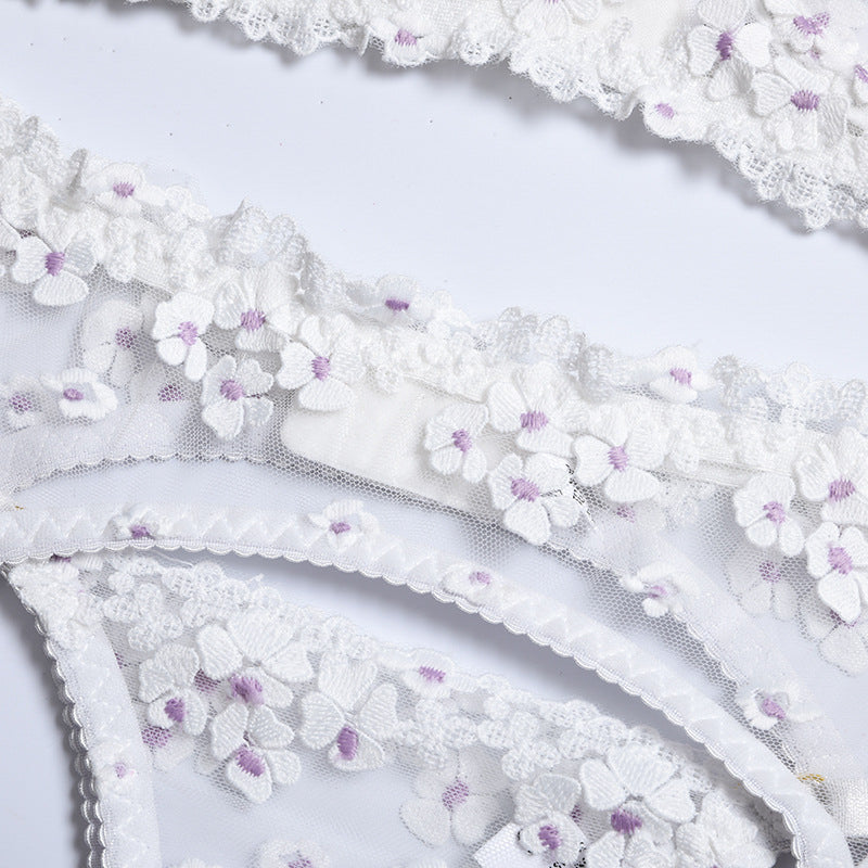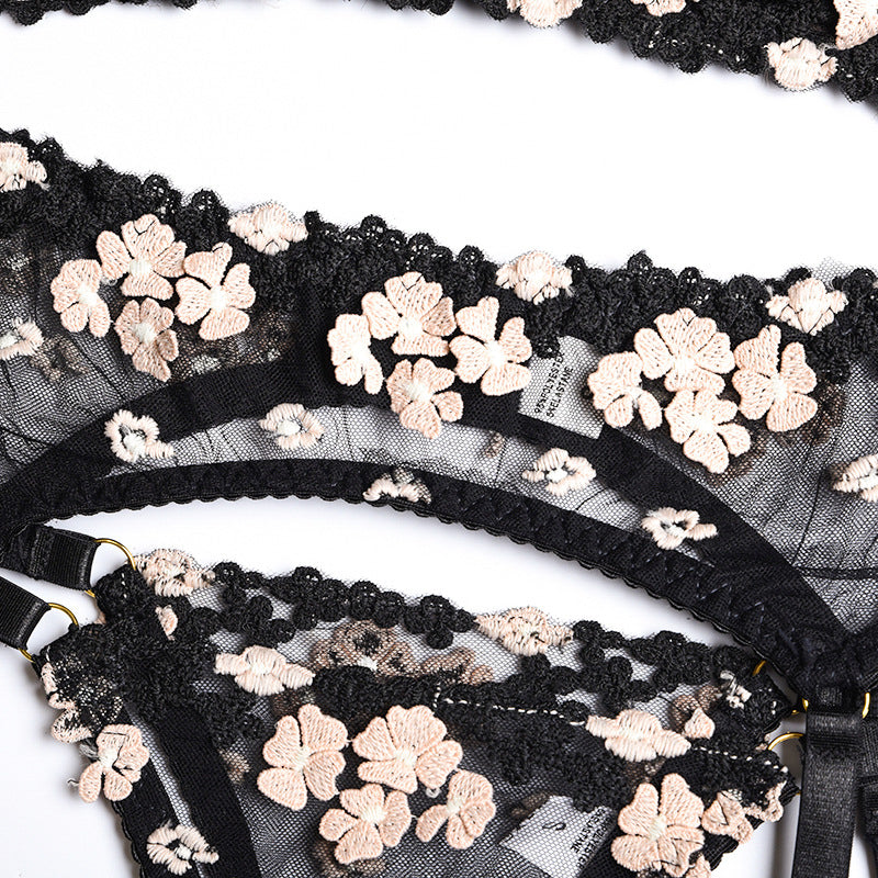 Komplet bielizny z kwiatowym haftem elegancki i wygodny Changok