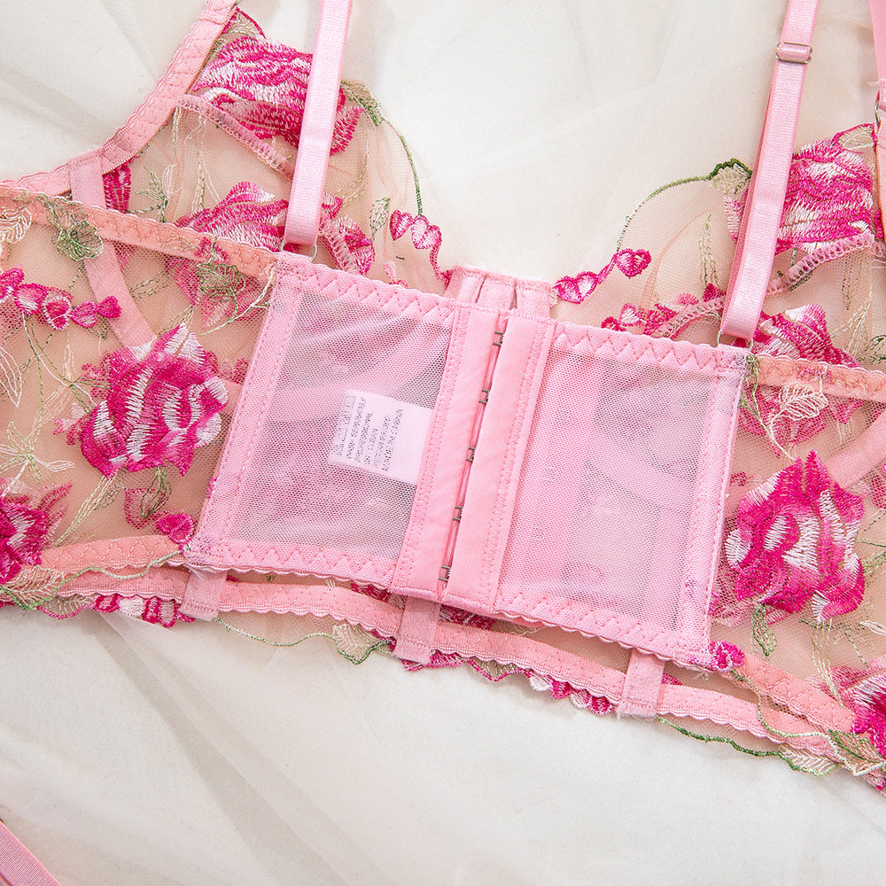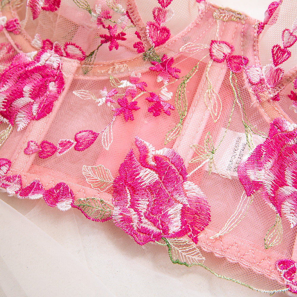 Komplet bielizny z kwiatowym haftem i koronkowym wykończeniem Keziban