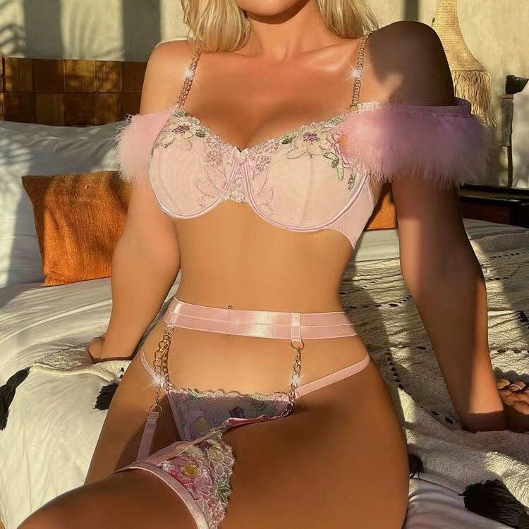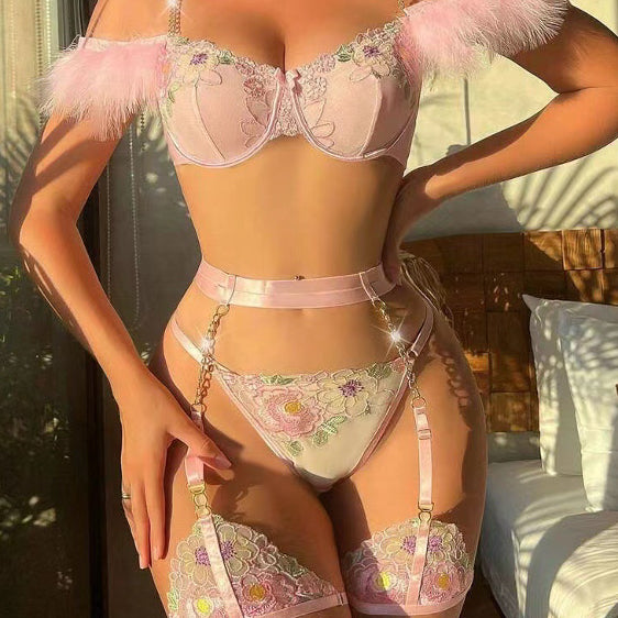 Komplet bielizny z łańcuszkiem i piórkami na specjalne okazje Sudie