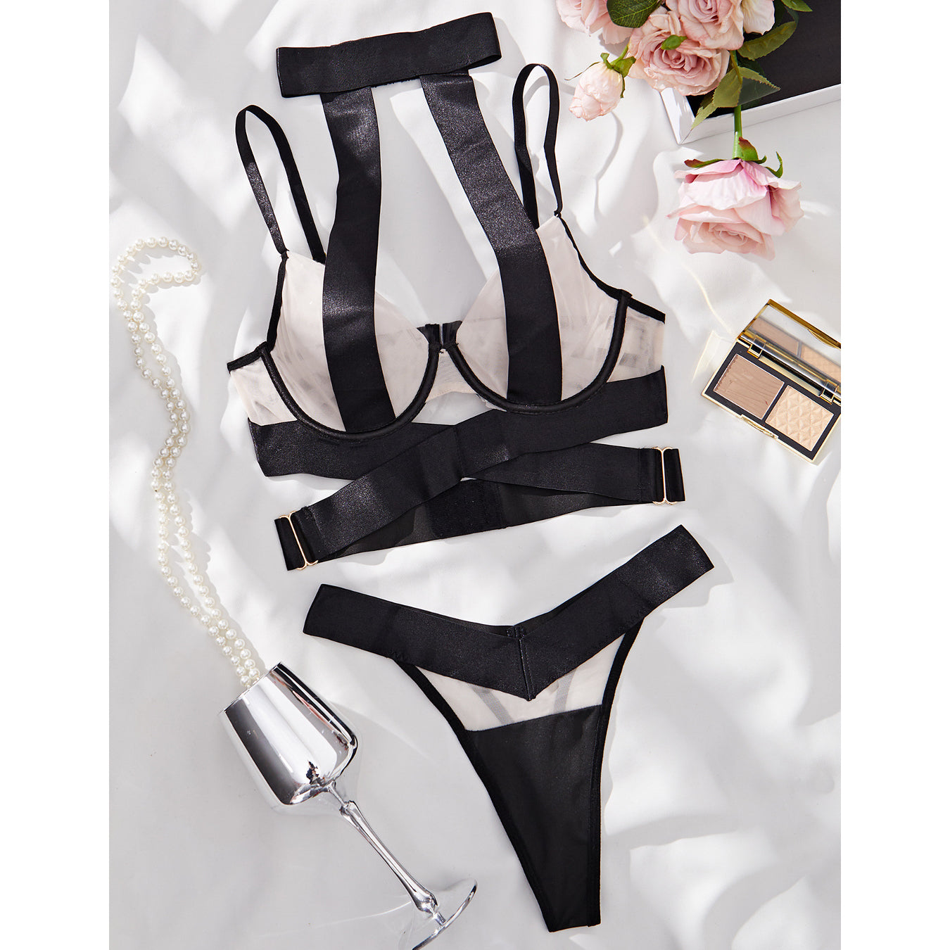 Komplet bielizny z ozdobnymi pasami podkreślający sylwetkę Irmentraut