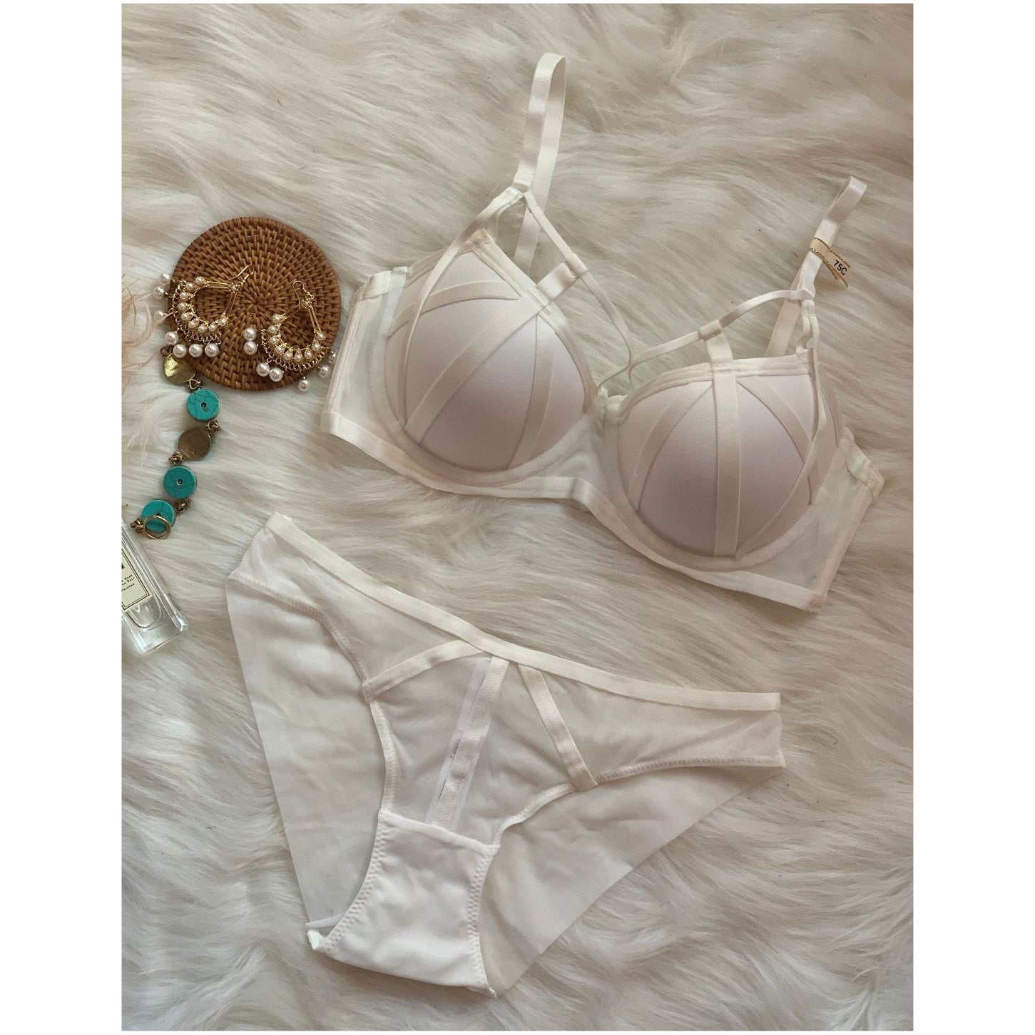 Komplet bielizny z paseczkami wyróżnia się przemyślanym krojem i funkcjonalnością. Biustonosz z delikatnie wyprofilowanymi miseczkami zapewnia optymalne wsparcie, skutecznie modelując sylwetkę. Nowoczesny design z paseczkami dodaje bieliźnie unikalnego charakteru. Dopełniające całość majtki gwarantują komfort dzięki lekkim materiałom, które nie krępują ruchów. Komplet ten doskonale sprawdzi się zarówno podczas codziennego noszenia, jak i w bardziej intymnych chwilach, oferując połączenie wygody i wyjątkowego stylu.