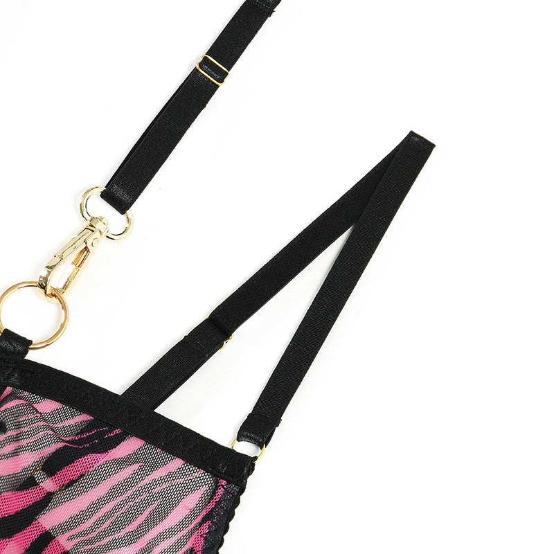 Komplet bielizny z paskami łączy w sobie funkcjonalność i nowoczesny design. Wykonany z elastycznego materiału z dodatkiem elastanu, zapewnia doskonałe dopasowanie do sylwetki. Starannie dobrane detale nadają mu unikalny charakter, czyniąc go interesującym wyborem na różne okazje. Komplet nie tylko podkreśla naturalne atuty ciała, ale również zapewnia komfort noszenia przez cały dzień. Dzięki swojej konstrukcji jest idealny zarówno pod codzienne ubrania, jak i na wieczorne wyjścia, stanowiąc modny element garderoby.