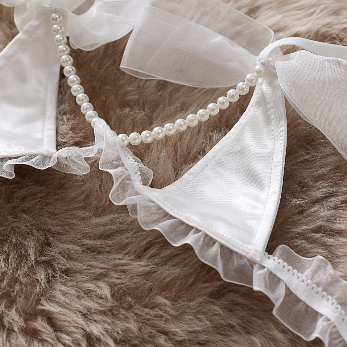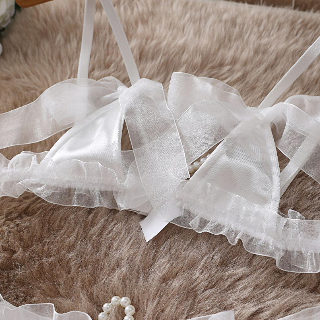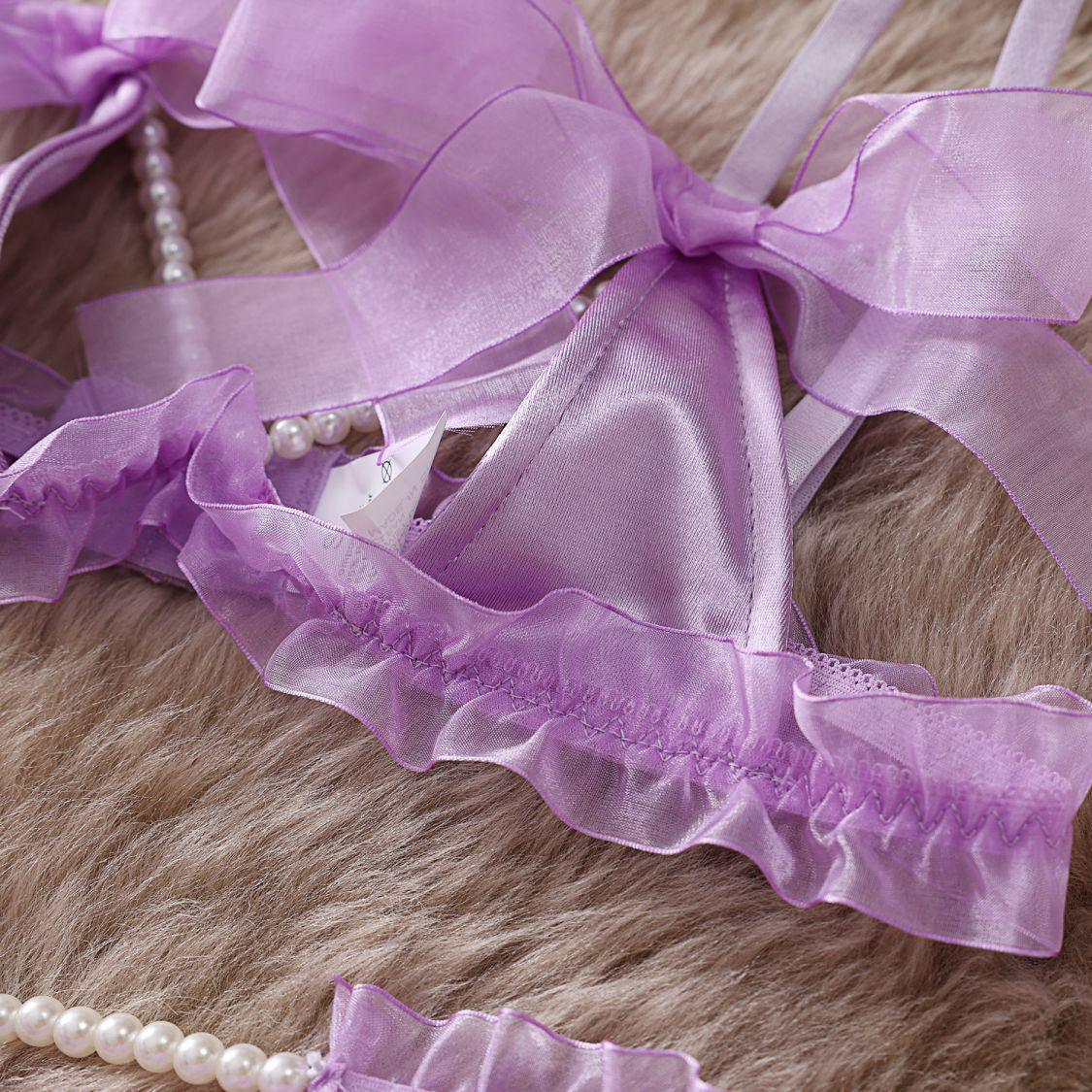 Komplet bielizny w erotycznym stylu wykonany z delikatnej siateczki, wzbogacony subtelnymi wstążkami, oferuje niepowtarzalny wygląd. Został zaprojektowany, aby podkreślić naturalne kształty ciała, zapewniając jednocześnie komfort dzięki starannemu wykończeniu. Idealny na specjalne okazje, łączy estetykę z funkcjonalnością, co czyni go atrakcyjnym wyborem dla osób ceniących elegancję. Materiały użyte do produkcji dbają o trwałość i wygodę, co sprawia, że komplet doskonale wpisuje się w różnorodne gusta i potrzeby.