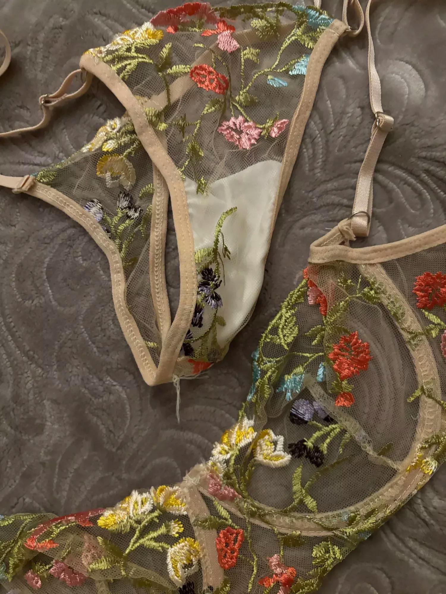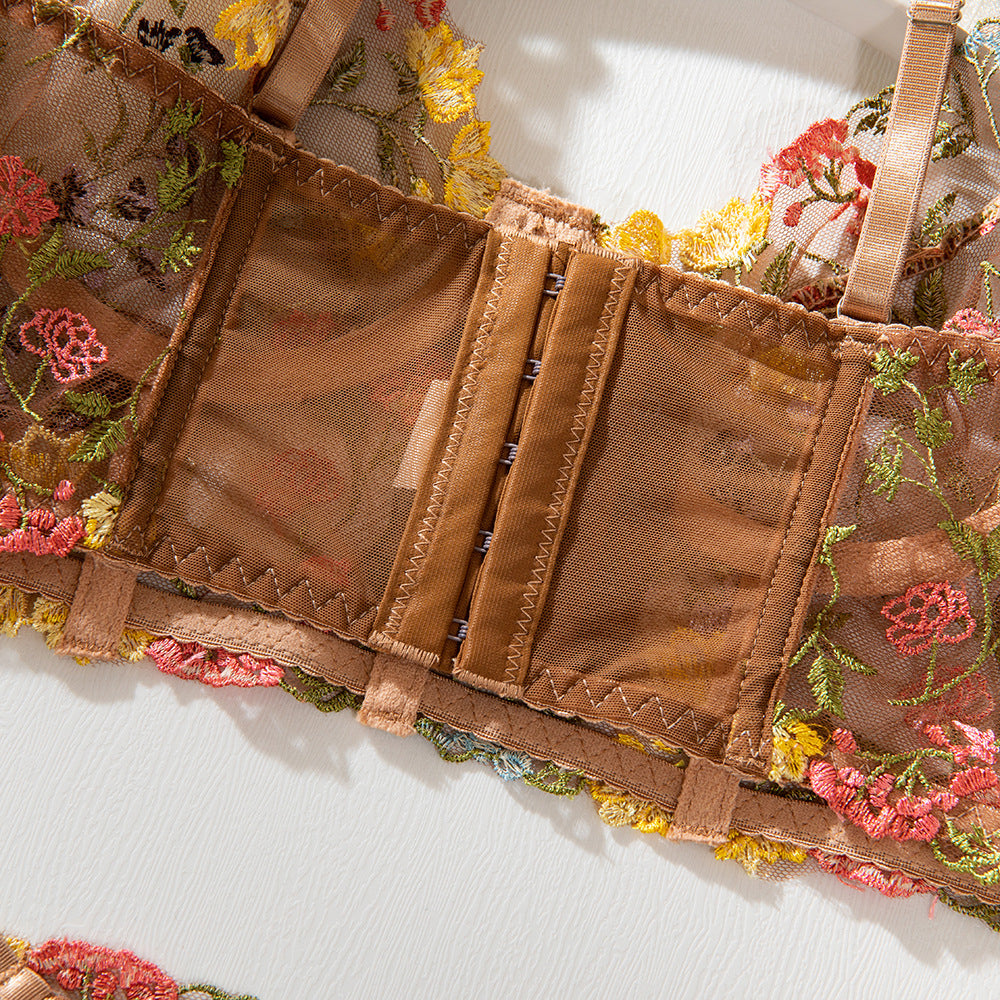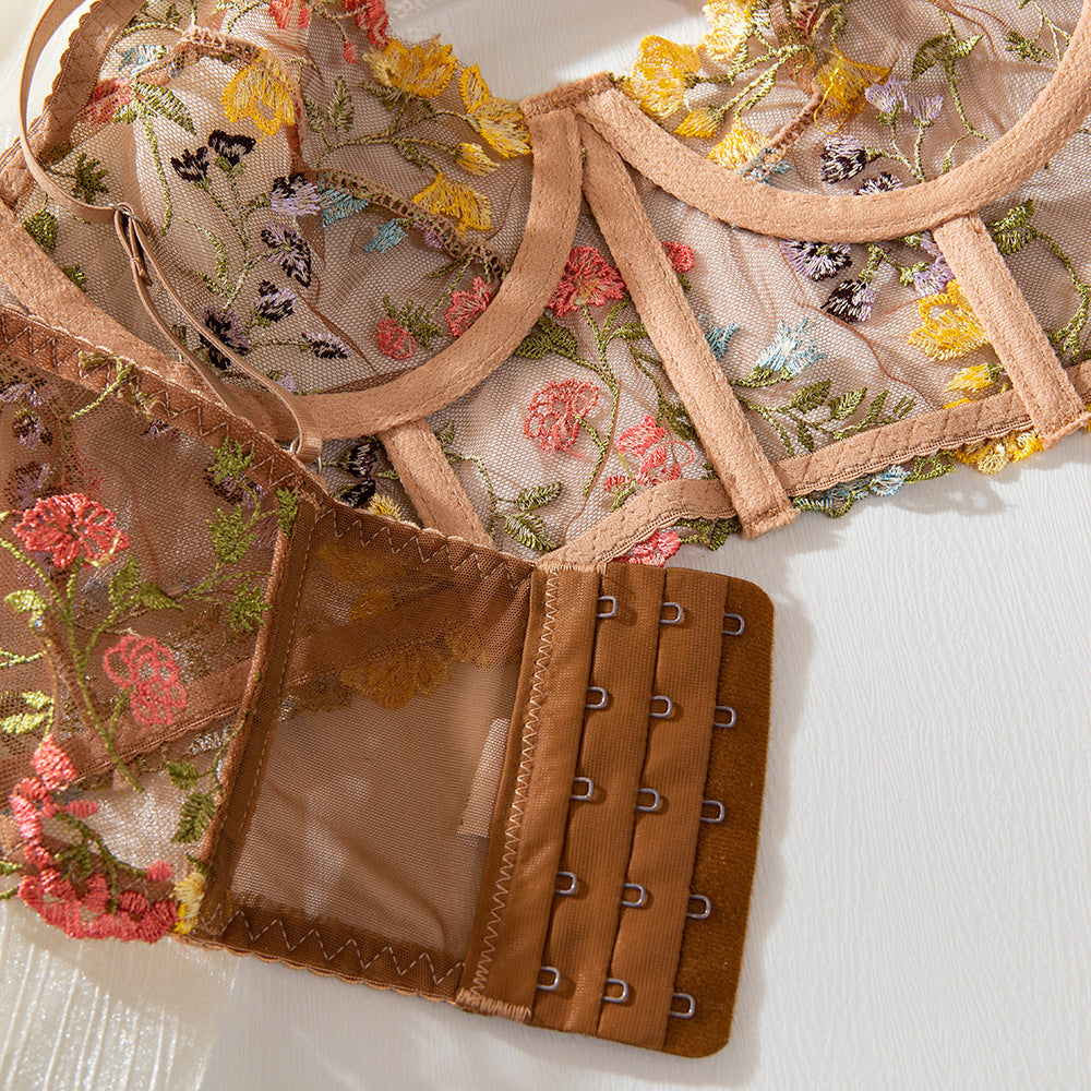 Komplet haftowanej bielizny z biustonoszem i majtkami tanga Dulina