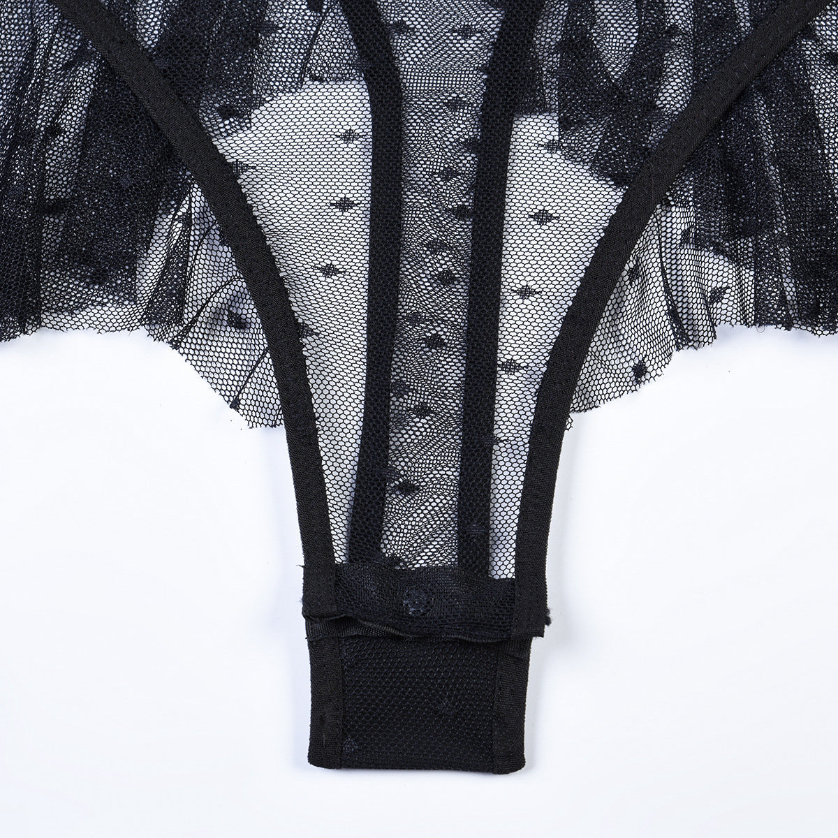 Komplet z transparentnym body to propozycja dla kobiet ceniących subtelną elegancję z nutą nowoczesności. Wykonany z wysokiej jakości, delikatnego materiału, zapewnia komfort noszenia przez cały dzień. Transparentne body idealnie komponuje się z różnorodnymi stylizacjami, od casualowych po bardziej formalne, dodając im lekkości i oryginalności. Dzięki neutralnej kolorystyce, stanowi uniwersalną bazę, którą łatwo zintegrować z innymi elementami garderoby. Komplet sprawdzi się zarówno na co dzień, jak i podczas wyjątkowych okazji.
