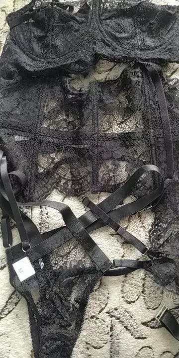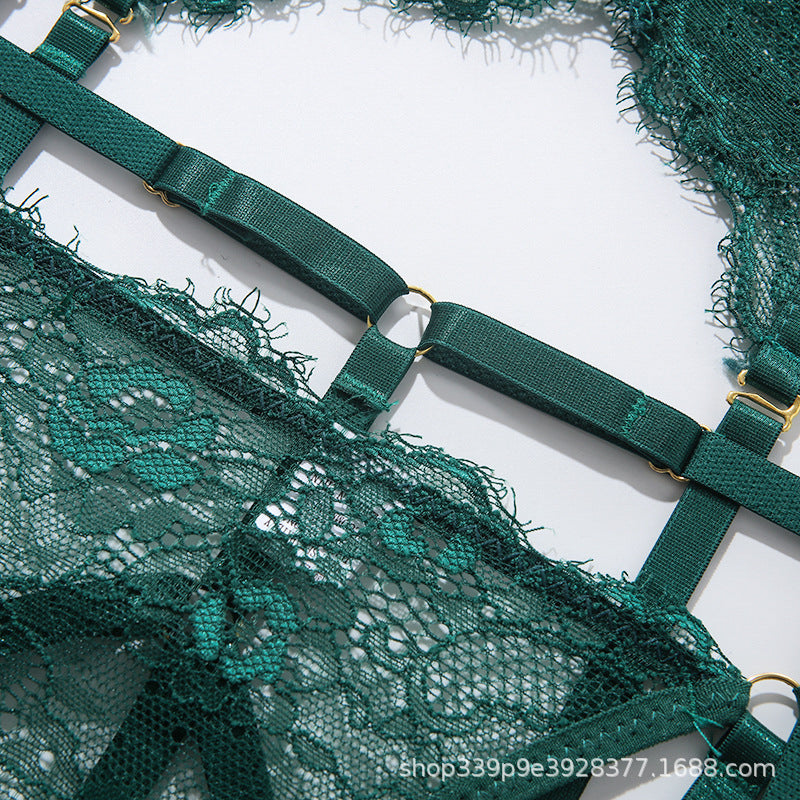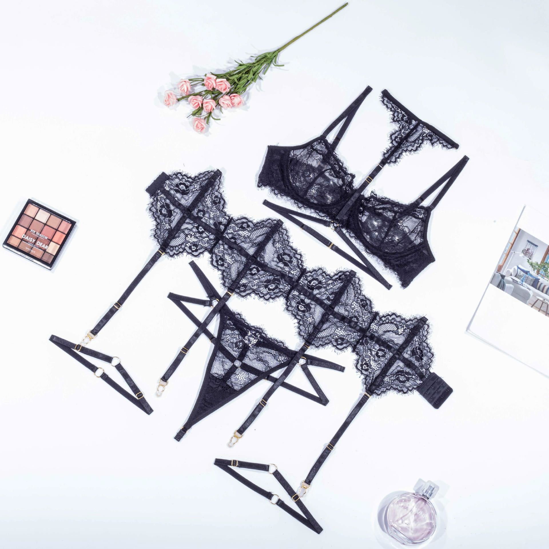 Koronkowy komplet bielizny z pasem do pończoch na romantyczny wieczór Fatinah