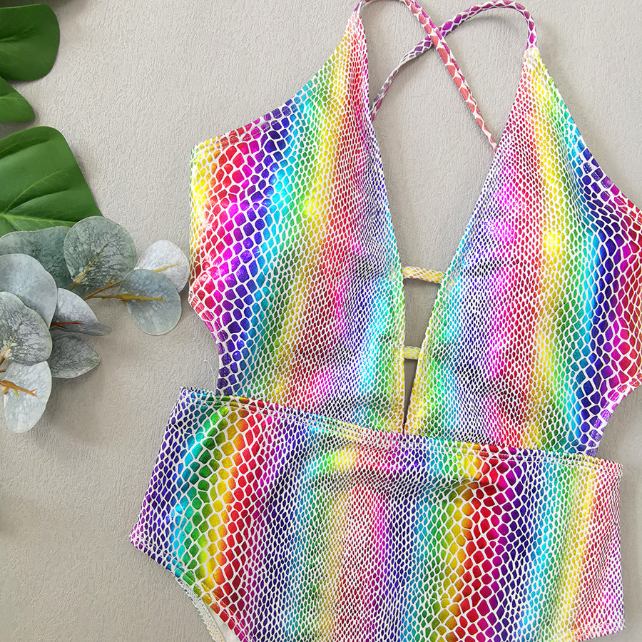 Strój kąpielowy jednoczęściowy w wzór rybiej łuski na plażę i basen Metanet