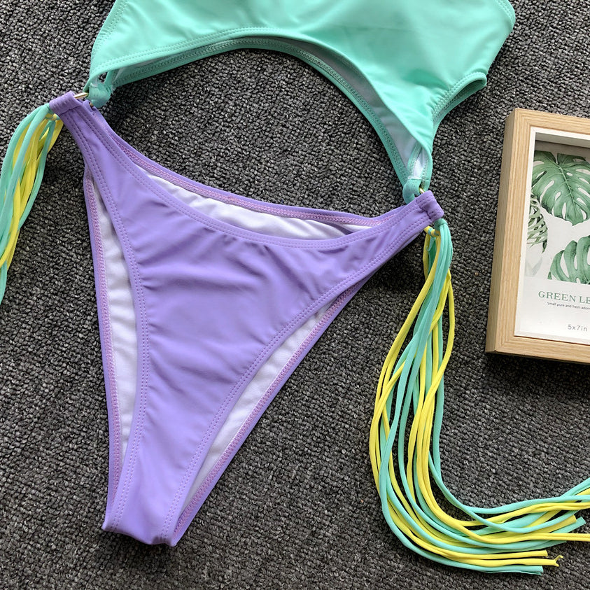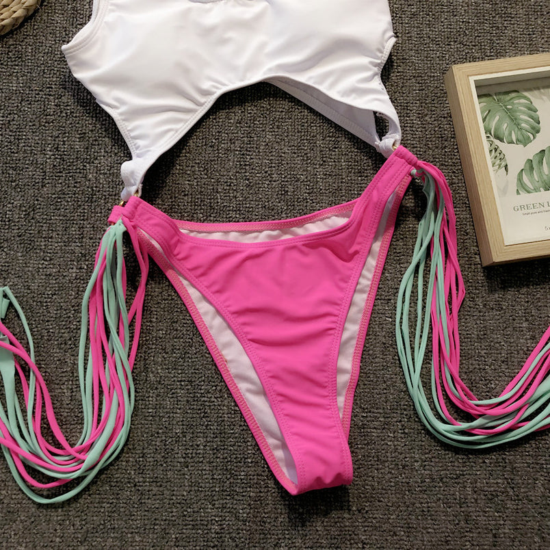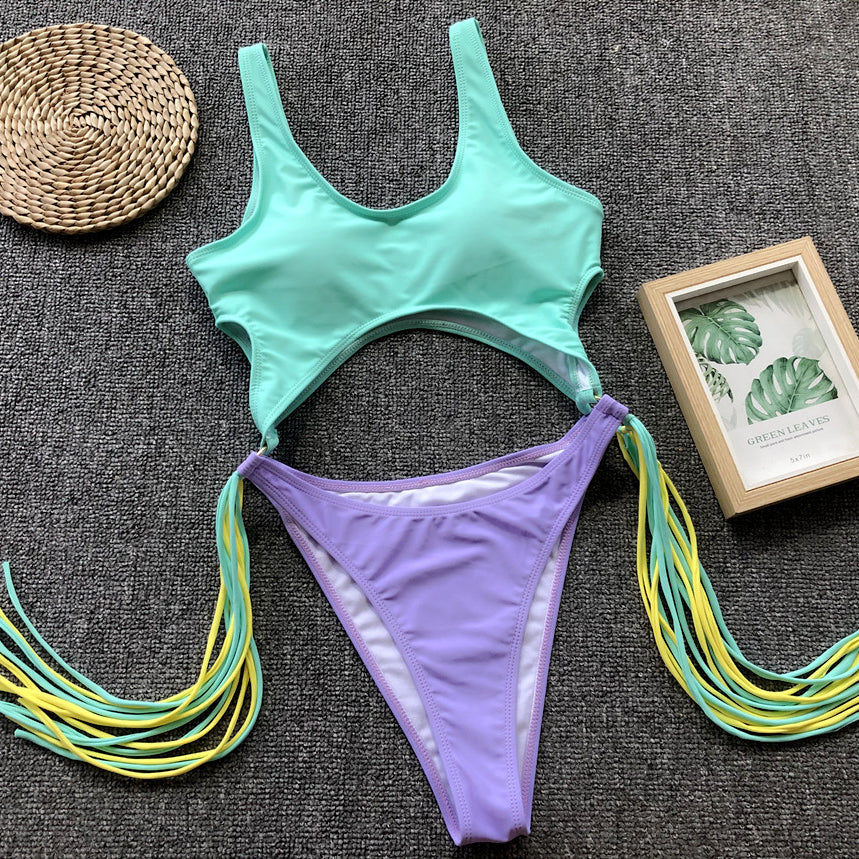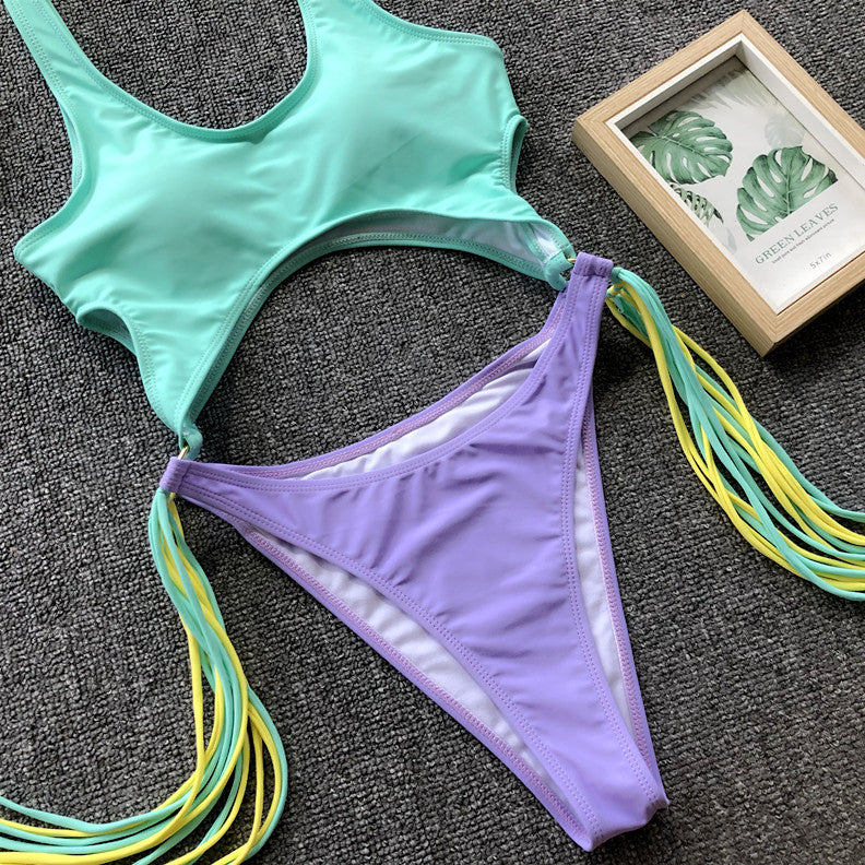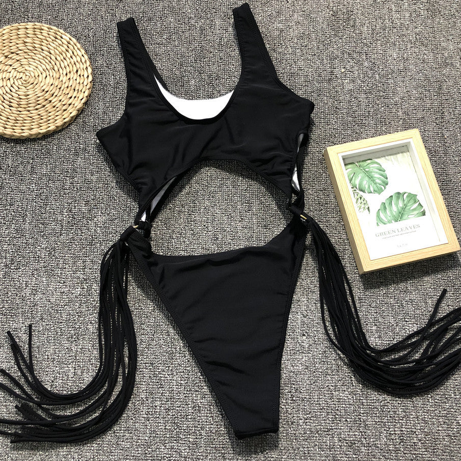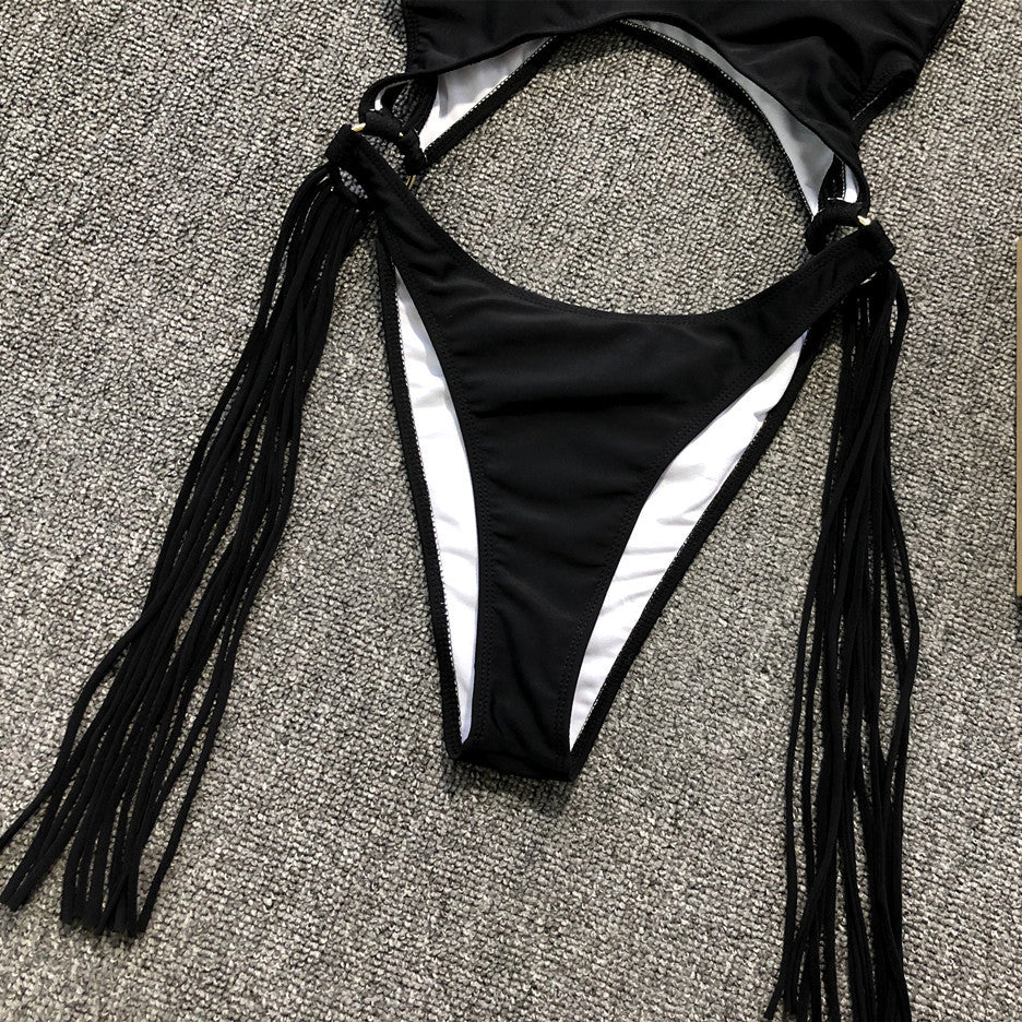 Strój kąpielowy z wycięciami i frędzlami na plażę i basen Helfriede