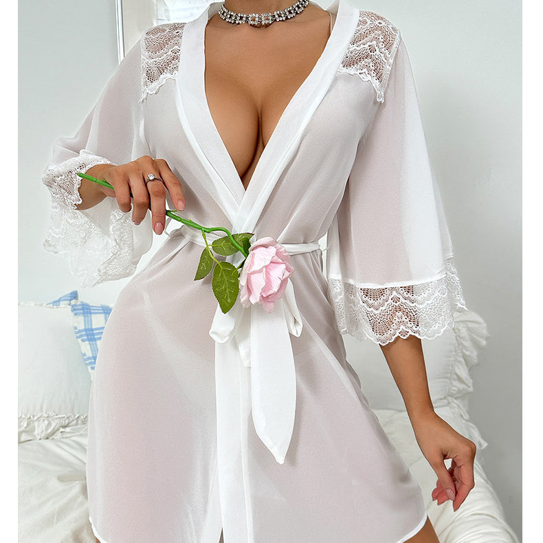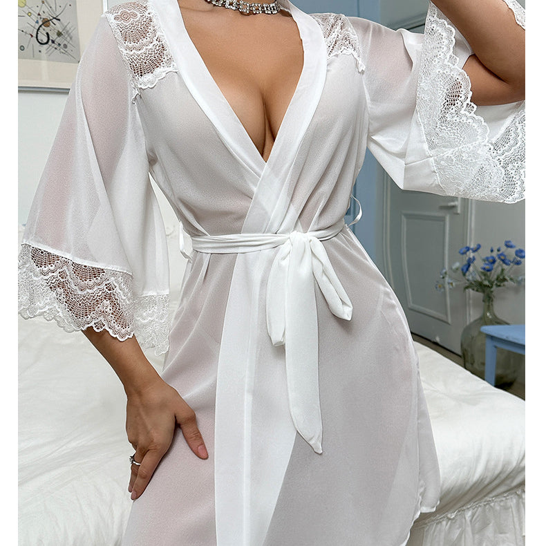 Szlafrok z koronkowym wykończeniem rękawów na wieczory w domu Selvedina