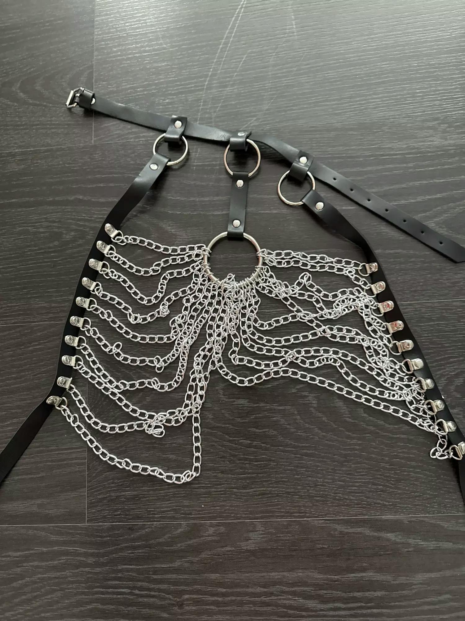 Uprząż z metalowymi łańcuszkami to nietuzinkowy element garderoby, który łączy w sobie nowoczesny design i funkcjonalność. Wykonana z wysokiej jakości materiałów, zapewnia wytrzymałość i komfort użytkowania. Dzięki możliwości regulacji, uprząż można łatwo dostosować do różnych sylwetek, co pozwala na wygodne noszenie przez dłuższy czas. Doskonale sprawdzi się jako uzupełnienie stylizacji na różnorodne wydarzenia, od imprez po wieczorne wyjścia. Metalowe łańcuszki dodają całości industrialnego charakteru, podkreślając indywidualny styl noszącego.