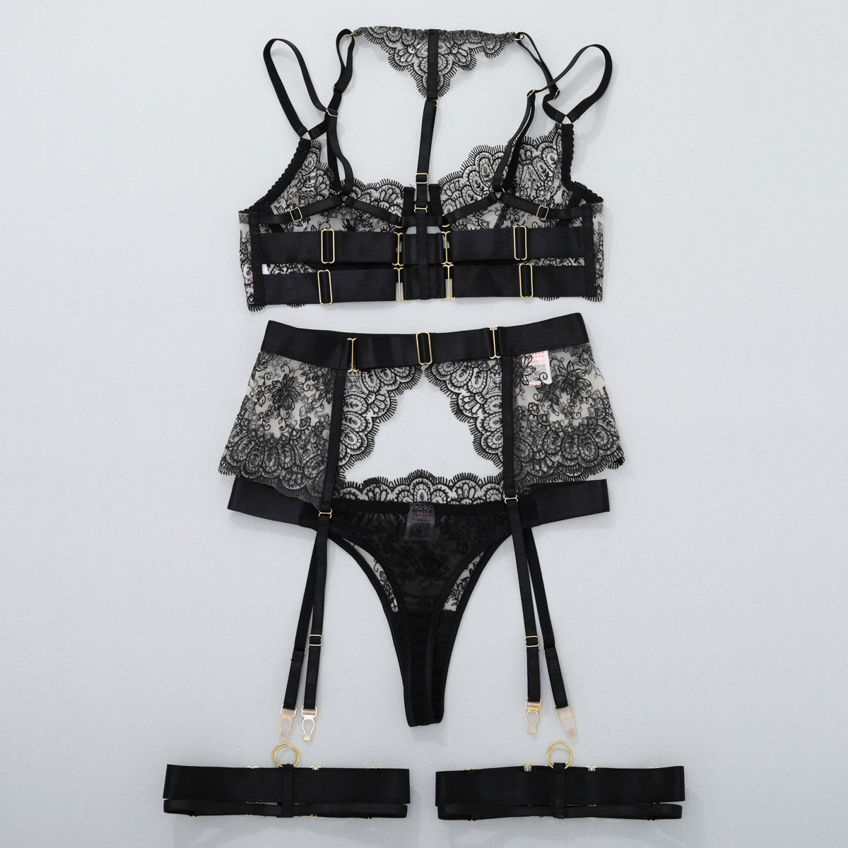 Czteroczęściowy zestaw bielizny oferuje eleganckie połączenie estetyki i funkcjonalności, idealne na różne okazje. Wykonany z delikatnej koronki, zapewnia wygodę noszenia, jednocześnie podkreślając naturalne kształty. Składa się z elementów, które można indywidualnie dopasować dzięki regulowanym ramiączkom, co zwiększa komfort użytkowania. Jego subtelne detale dodają unikalnego charakteru, wyróżniając go spośród innych rozwiązań dostępnych na rynku. Zestaw sprawdzi się zarówno podczas ważnych wydarzeń, jak i w codziennych sytuacjach, oferując wyjątkowy komfort w domowym zaciszu.