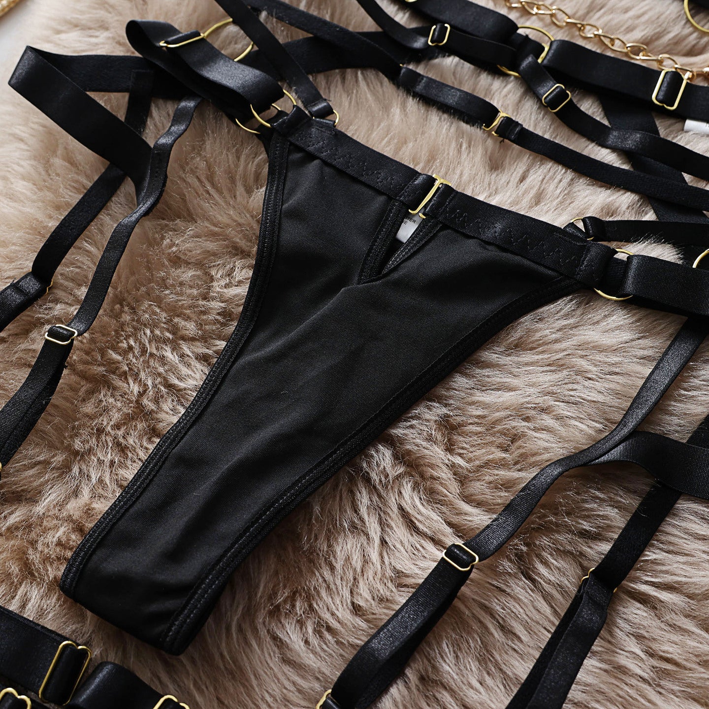 Zestaw bielizny erotycznej charakteryzuje się starannym wykonaniem i wyjątkowym designem. Składa się z elementów o odważnych detalach, które podkreślają sylwetkę, jednocześnie zapewniając komfort noszenia. Wykorzystane materiały są miękkie i delikatne dla skóry, co sprawia, że bielizna jest wygodna nawet podczas dłuższego użytkowania. Idealnie nadaje się na wyjątkowe wieczory, oferując zarówno estetyczne, jak i praktyczne rozwiązanie dla osób ceniących elegancję i intymność.