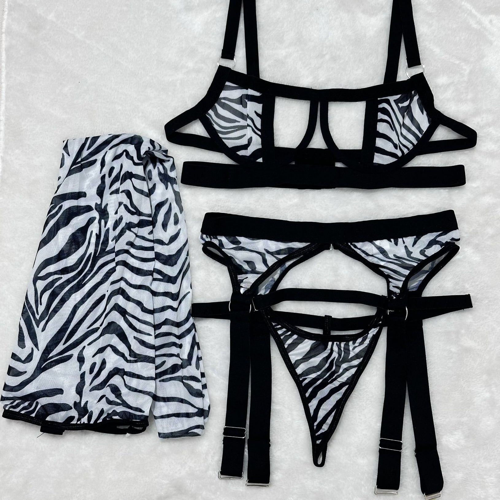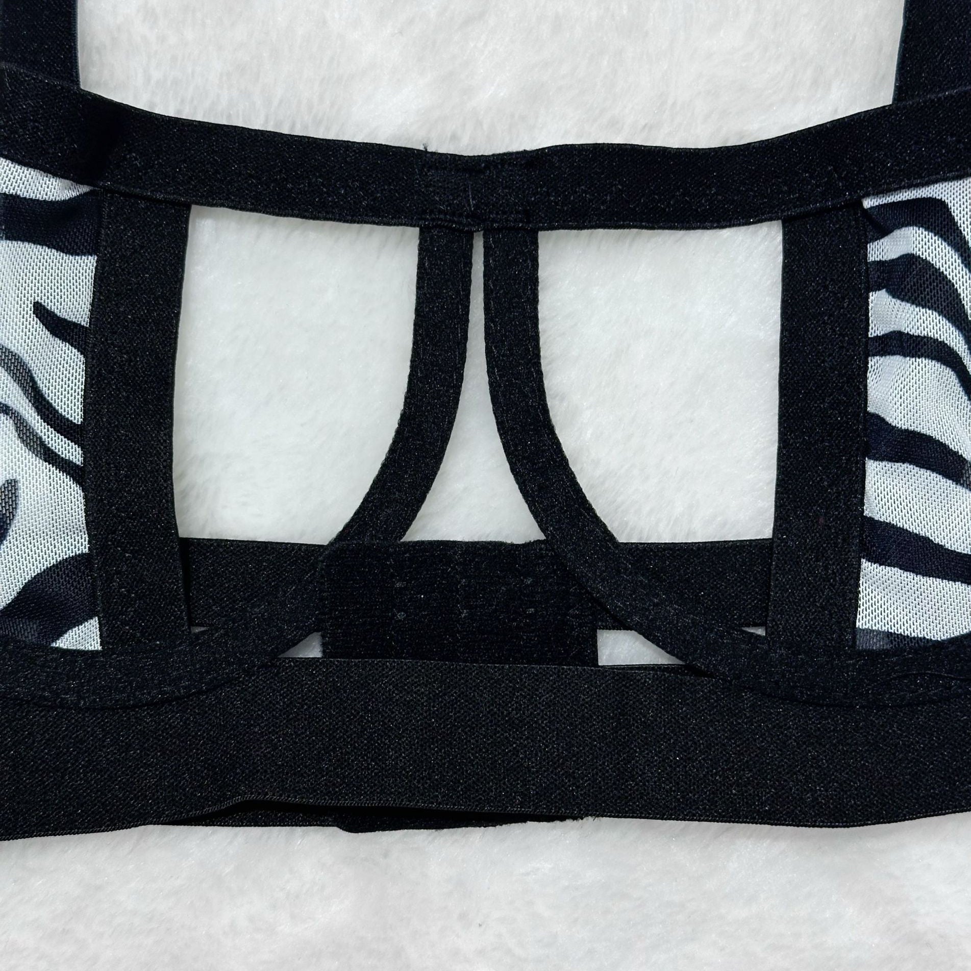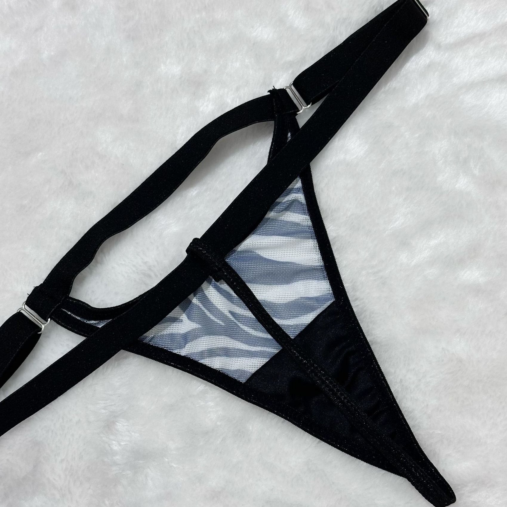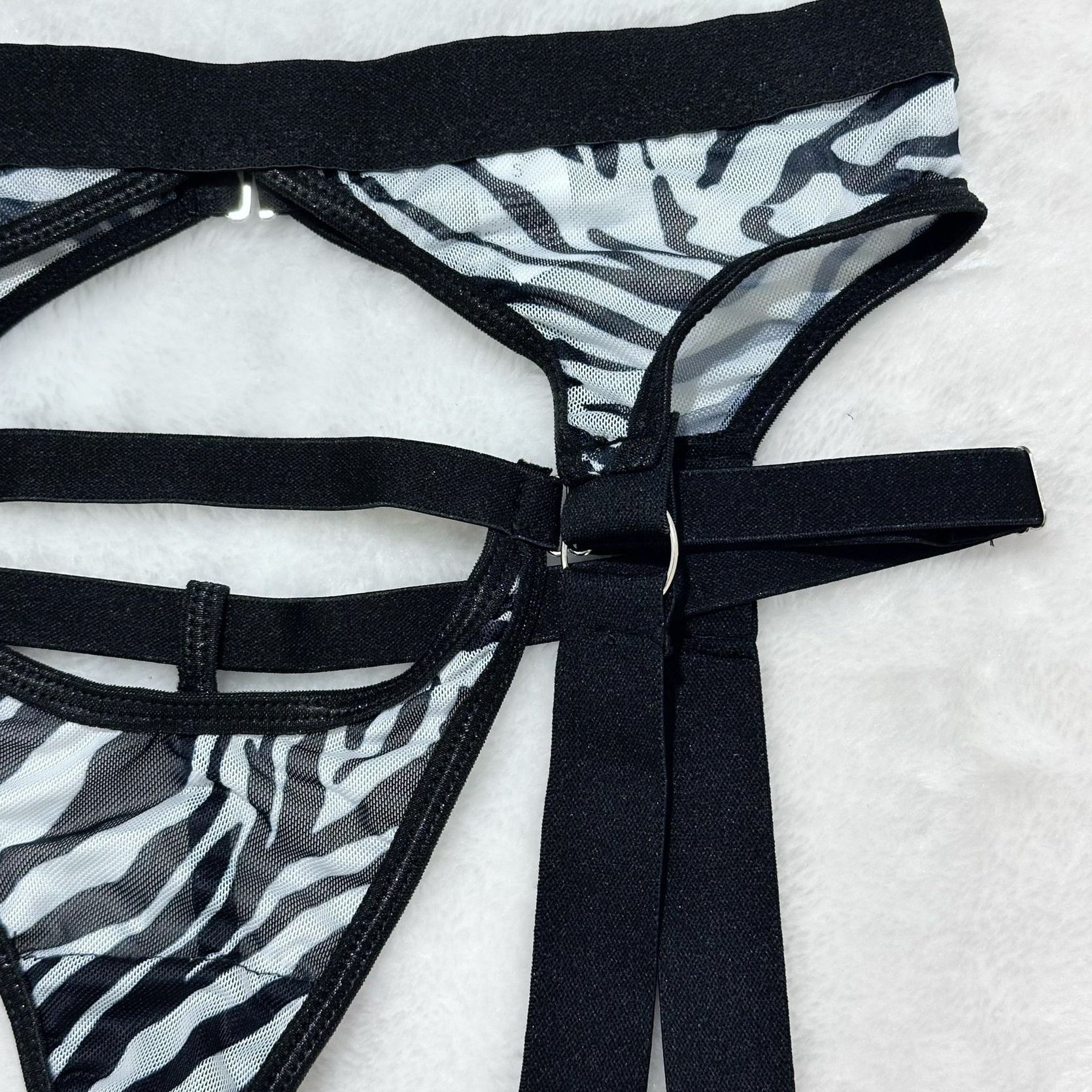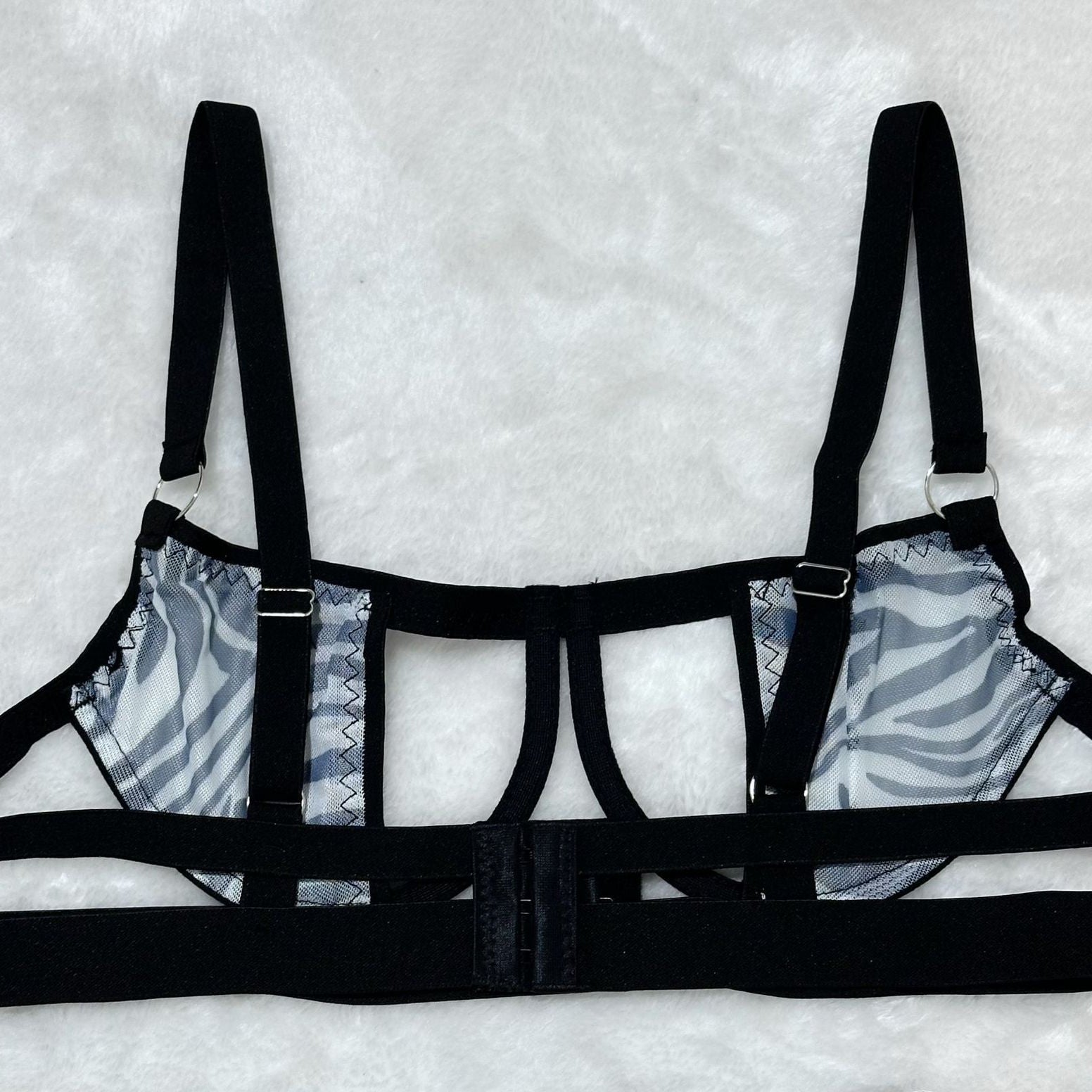 Ten zestaw bielizny z prześwitującymi elementami wyróżnia się delikatnym materiałem, który subtelnie układa się na ciele, zapewniając komfort noszenia. Przezroczyste wstawki umieszczone w strategicznych miejscach dodają niebanalnego charakteru, jednocześnie podkreślając sylwetkę. Starannie zaprojektowane detale tworzą harmonijną całość, idealną dla osób ceniących elegancki styl. Materiał, z którego wykonano bieliznę, charakteryzuje się elastycznością i trwałością, co pozwala na długotrwałe użytkowanie bez utraty jakości.